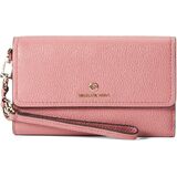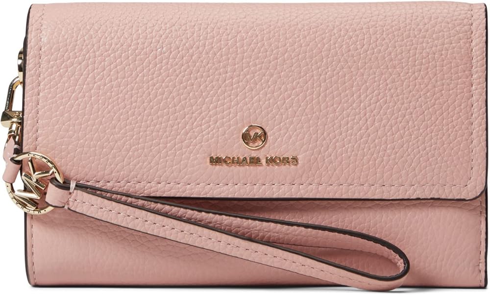The MICHAEL Michael Kors Jet Set Charm Large Flap Phone Wristlet let's your wrist show off with a little style Snap flap detail closure. One back zip pocket. Six credit card slots. Front ID window pocket. Bill compartment with front tech pocket. Polyvinyl chloride, polyester and polyurethane. Spot clean.