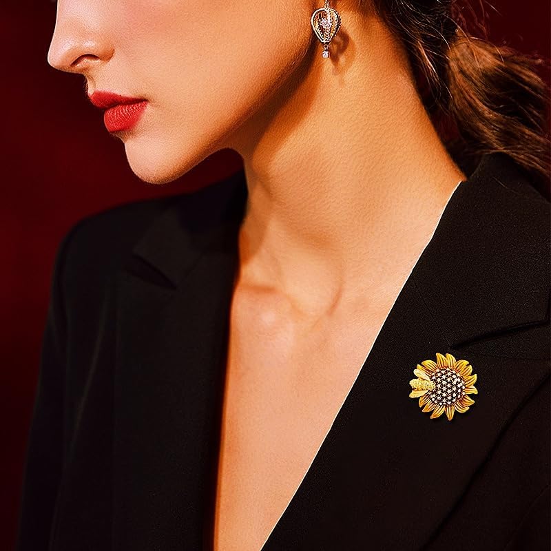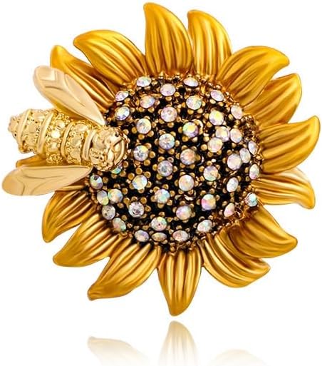 Sunflower Bee Brooches Pin Badge Crystal Honeybee Flower Pin Badge Brooch Memorabilia Gift Decorations