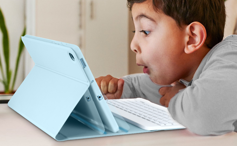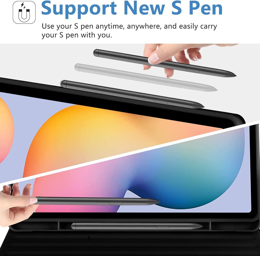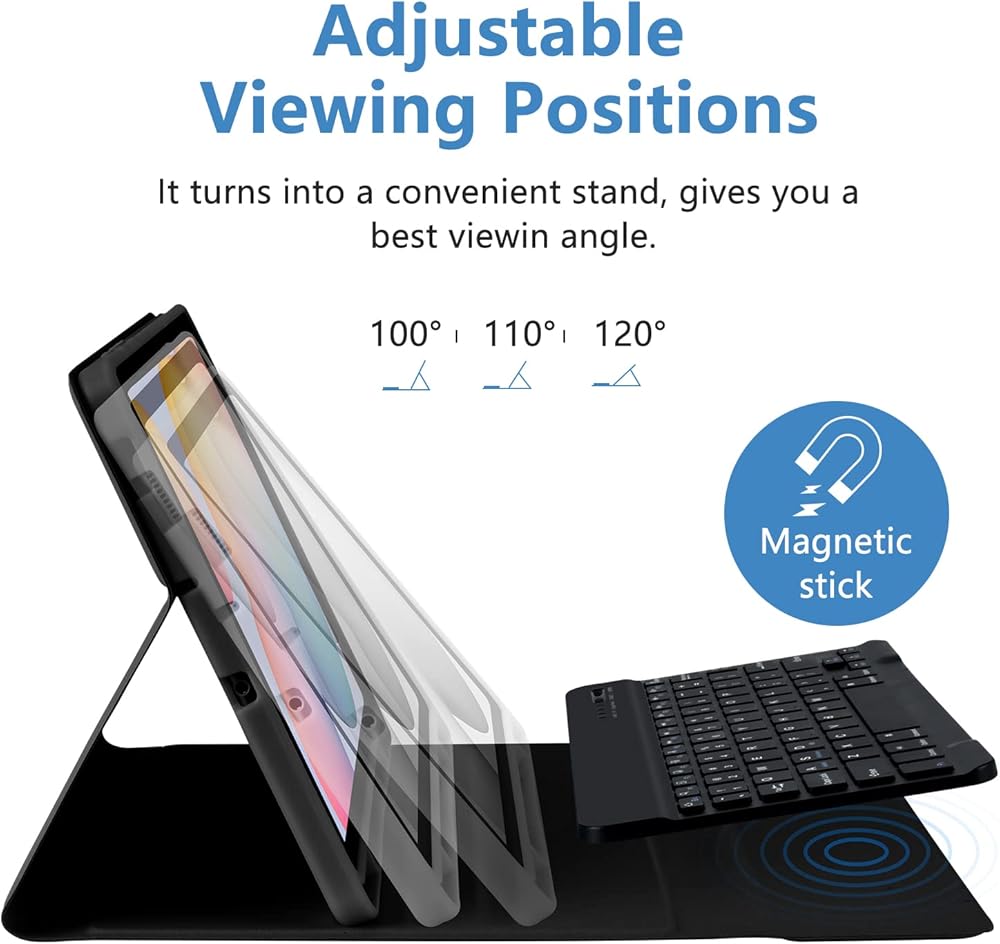 ⌨️⌨️【زوايا متعددة】تحتوي حافظة سامسونج جالاكسي تاب s6 لايت على 3 زوايا حامل مضادة للانزلاق، يمكنك ضبط زاوية الجهاز اللوحي حسب تفضيلاتك؛ وتدعم وظيفة النوم/الاستيقاظ التلقائي.