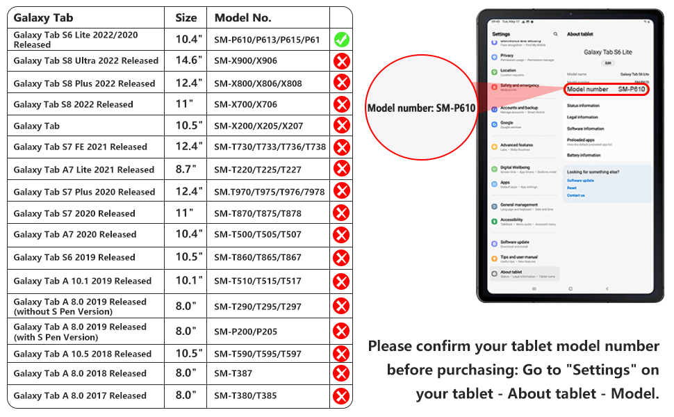⌨️⌨️ 【الموديلات المتوافقة】مصممة خصيصًا لجهاز Samsung Galaxy Tab S6 Lite مقاس 10.4 بوصة (رقم الموديل: SM-P610/ SM-P615)؛ لن يعمل مع أي طراز آخر من الأجهزة.