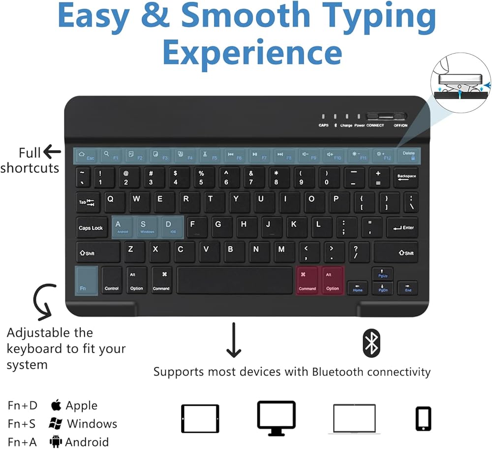 ⌨️⌨️【لوحة مفاتيح بلوتوث لاسلكية رفيعة】لوحة مفاتيح بلوتوث لاسلكية رفيعة يسهل وضعها في حقيبة أو حقيبة يد أو حقيبة ظهر؛ لوحة مفاتيح بلوتوث قابلة للفصل مع بطارية قابلة لإعادة الشحن لعمر لوحة المفاتيح الطويل.