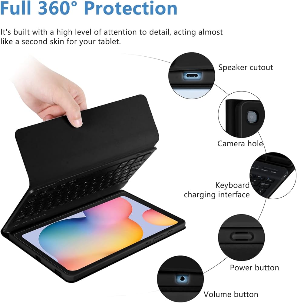 ⌨️⌨️ 【حماية كاملة】يحمي جراب Samsung Galaxy Tab S6 Lite 10.4" 2020 ظهر الجهاز اللوحي وحوافه وزواياه من الخدوش والصدمات؛ تتيح الفتحات الدقيقة سهولة الوصول إلى جميع المنافذ والكاميرا ومكبرات الصوت ومقبس سماعات الرأس وأدوات التحكم في مستوى الصوت.