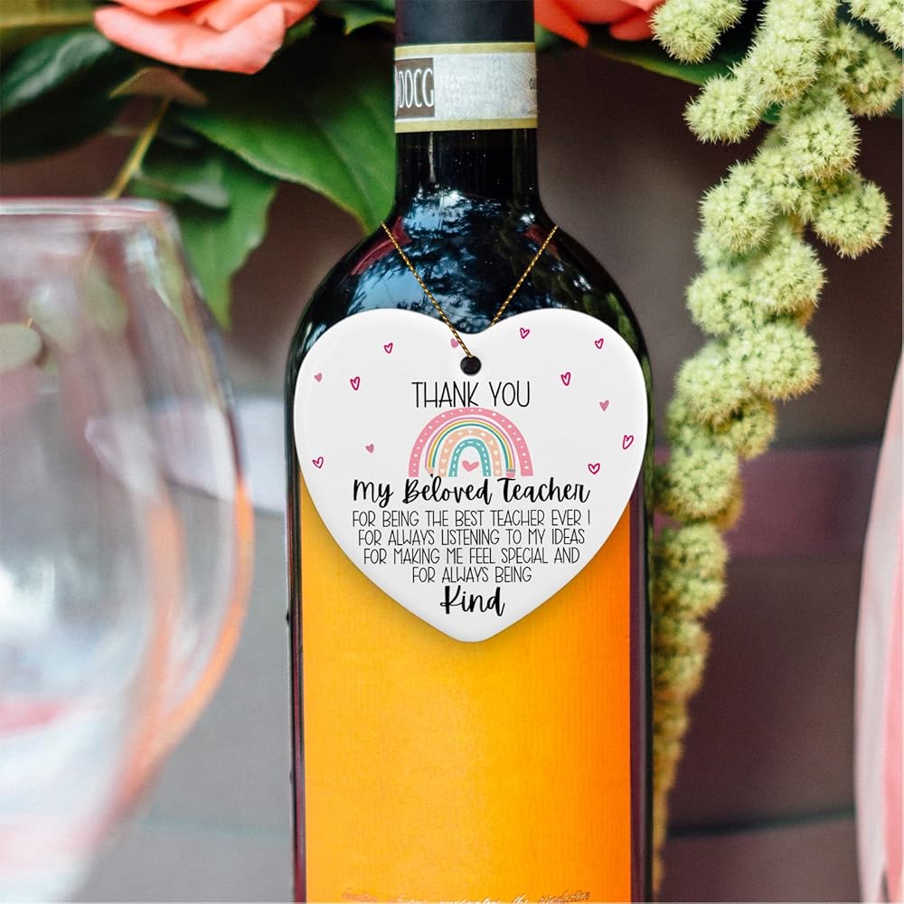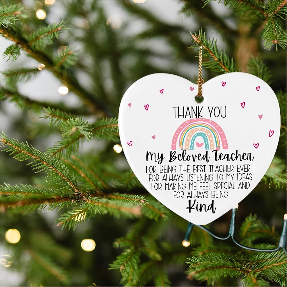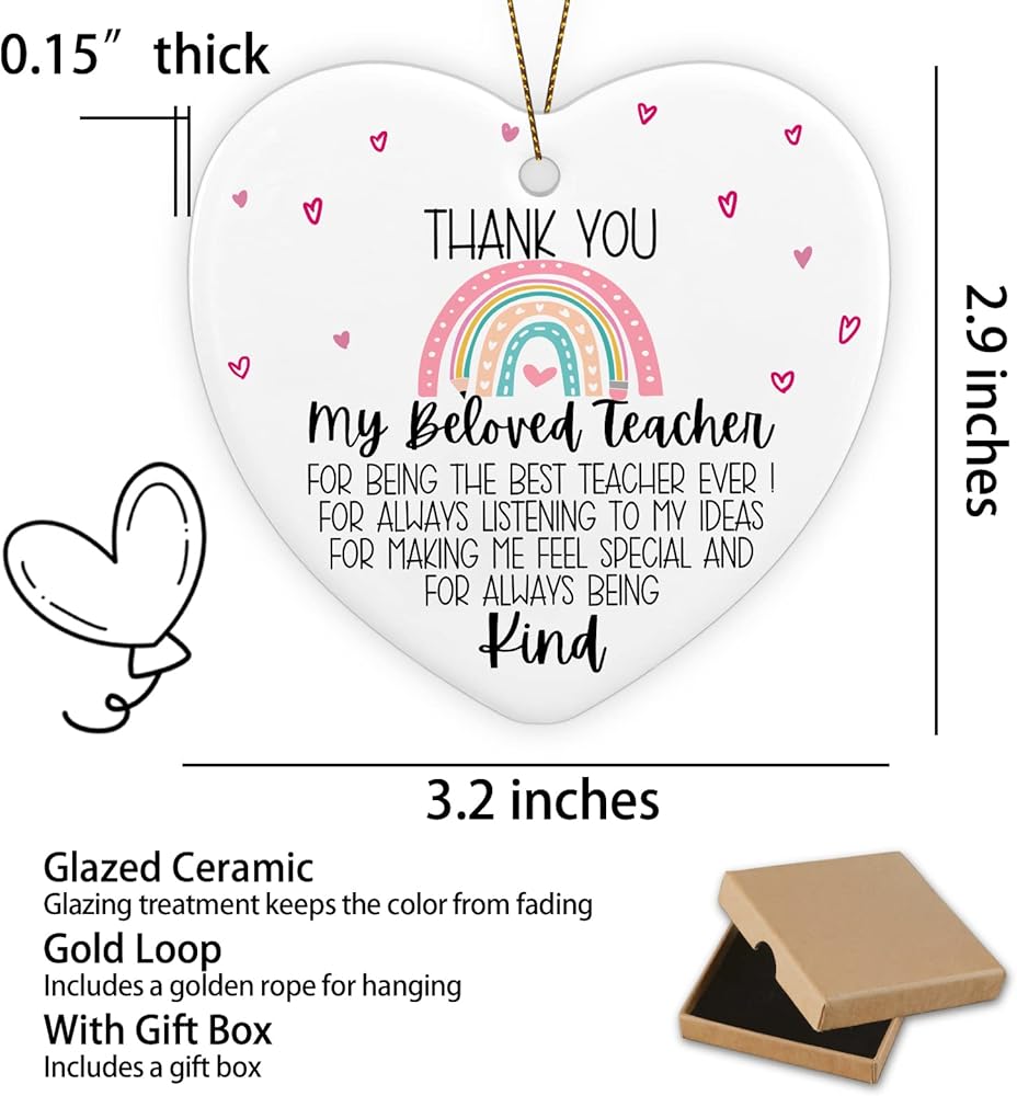 [Perfect gifts]:this is a personalized keepsake, each ornament is made from porcelain ceramic,as the nice gift to celebrate their special day,the perfect keepsake nicely printed with warm phrase and heartfelt message. This ornament gift for teacher friends family is made of high quality white ceramics and double-sided printing technology, it is also a birthday Christmas retirement teachers day Thanksgiving gifts.