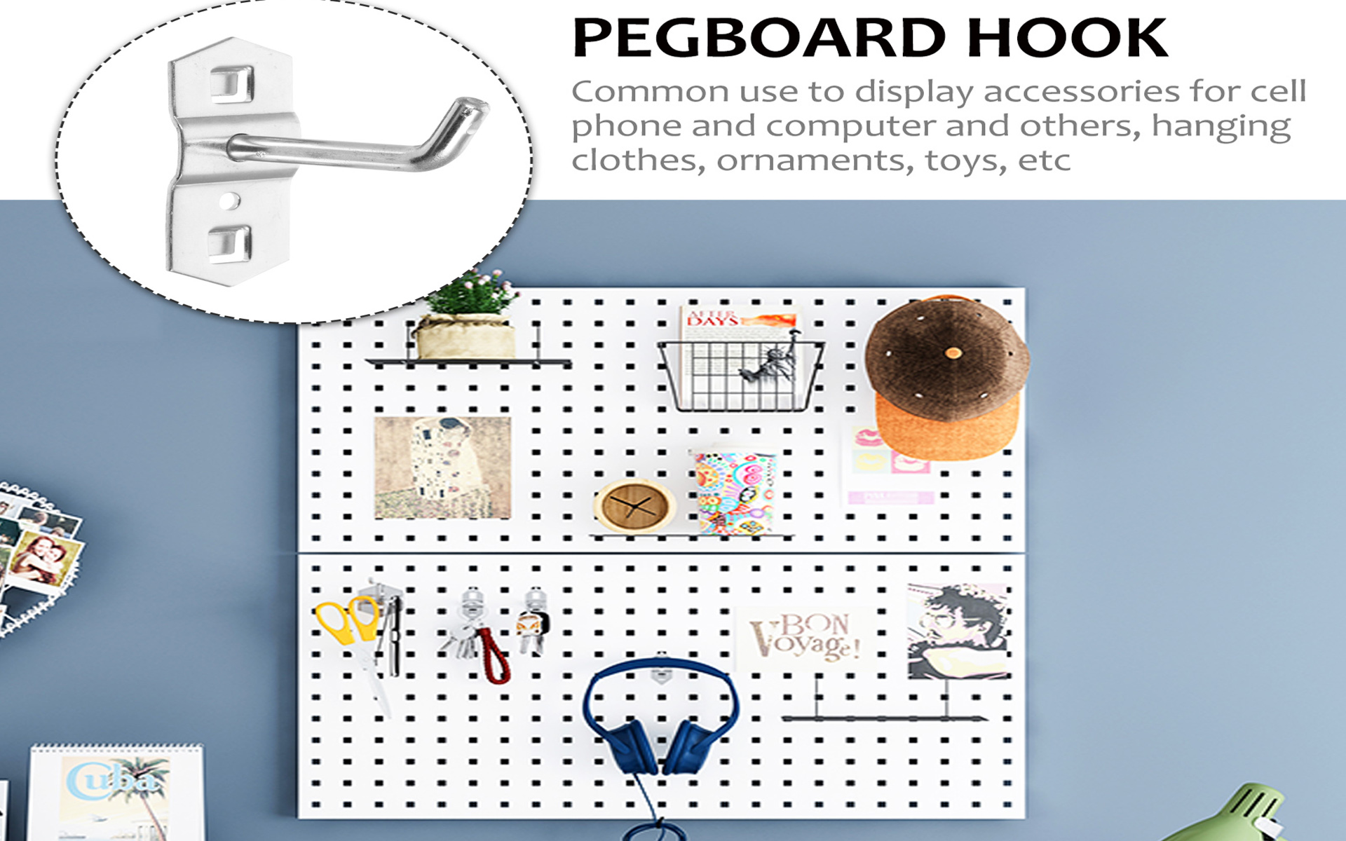 【خطافات ربط ثقيلة】تضمن تنظيمًا أنيقًا ويمكنها حمل الأدوات الثقيلة والمثاقب اللاسلكية وغيرها من الأدوات الكهربائية المحمولة بمساعدة خطاف عرض حديدي وحامل مثقاب بيجبورد عالي الجودة.
