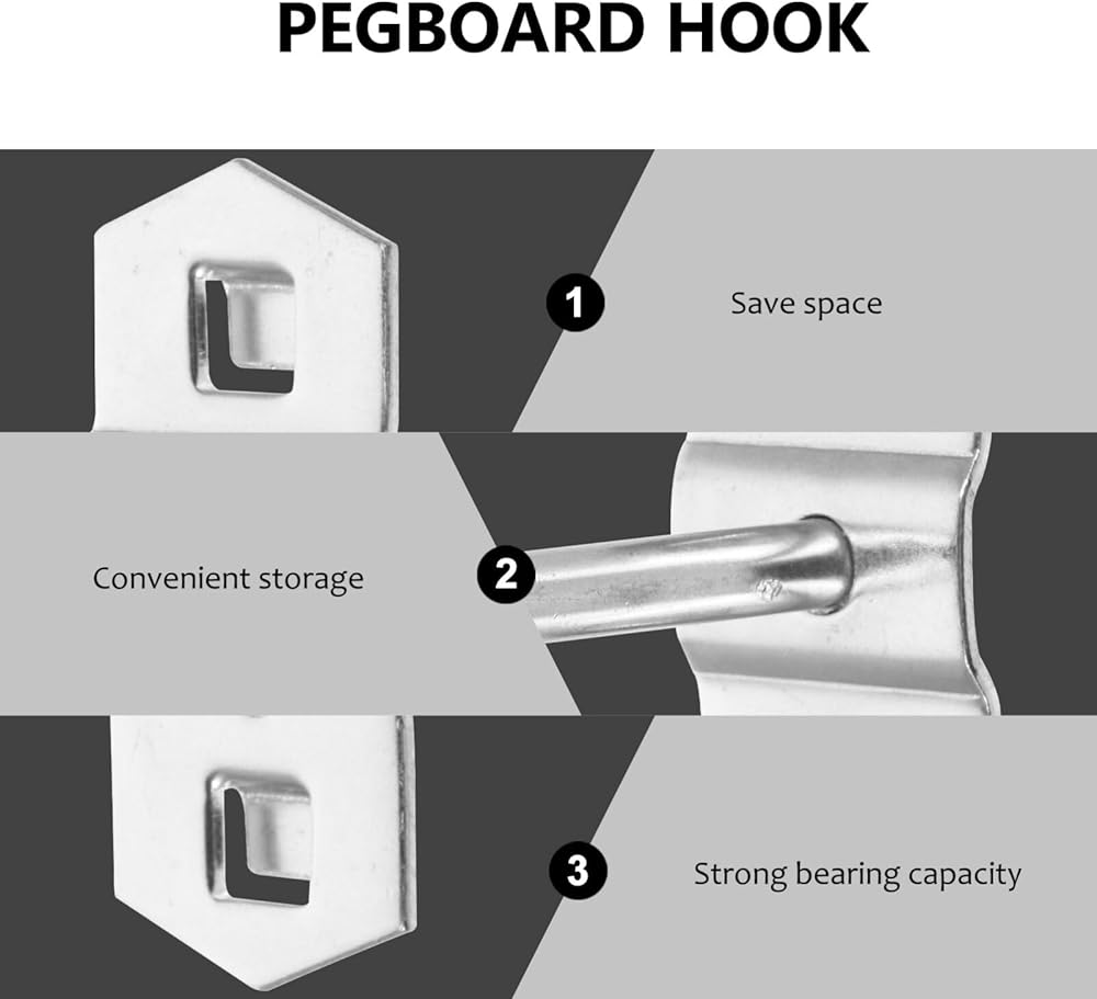 【خطافات لوحة الربط لأدوات التعليق】تساعد في تنظيم مجموعة واسعة من الأدوات والمعدات بطريقة منظمة، باستخدام خطافات لوحة التعليق.