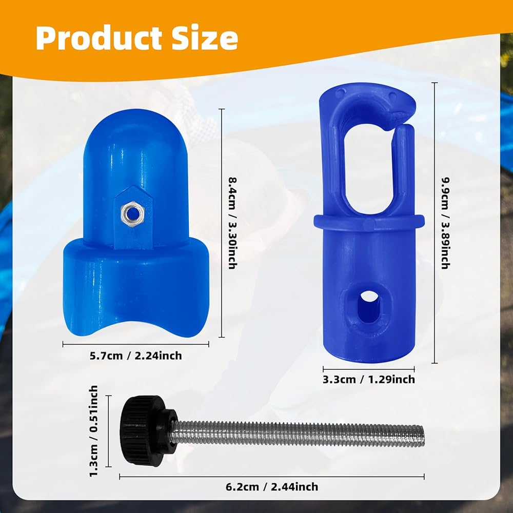 • High Quality: These trampoline pole caps are made of thick and safe plastic material, and the screw thumbs are made of stainless steel, with smooth surface without burrs and damages.