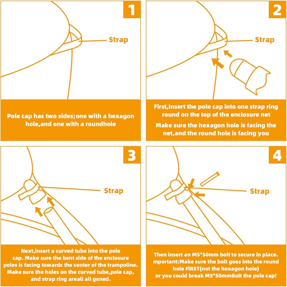 • Easy To Install: Trampoline enclosure pole caps help attach the net to the enclosure poles and help secure the trampoline safety net. Ideal replacement part for repairing your trampoline.