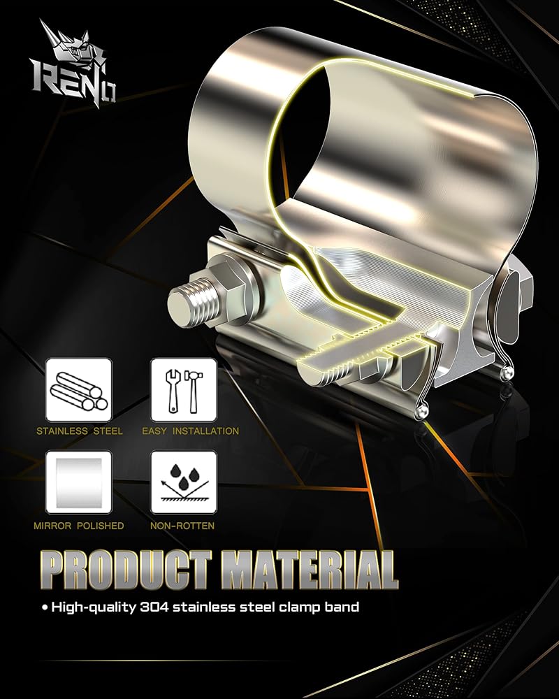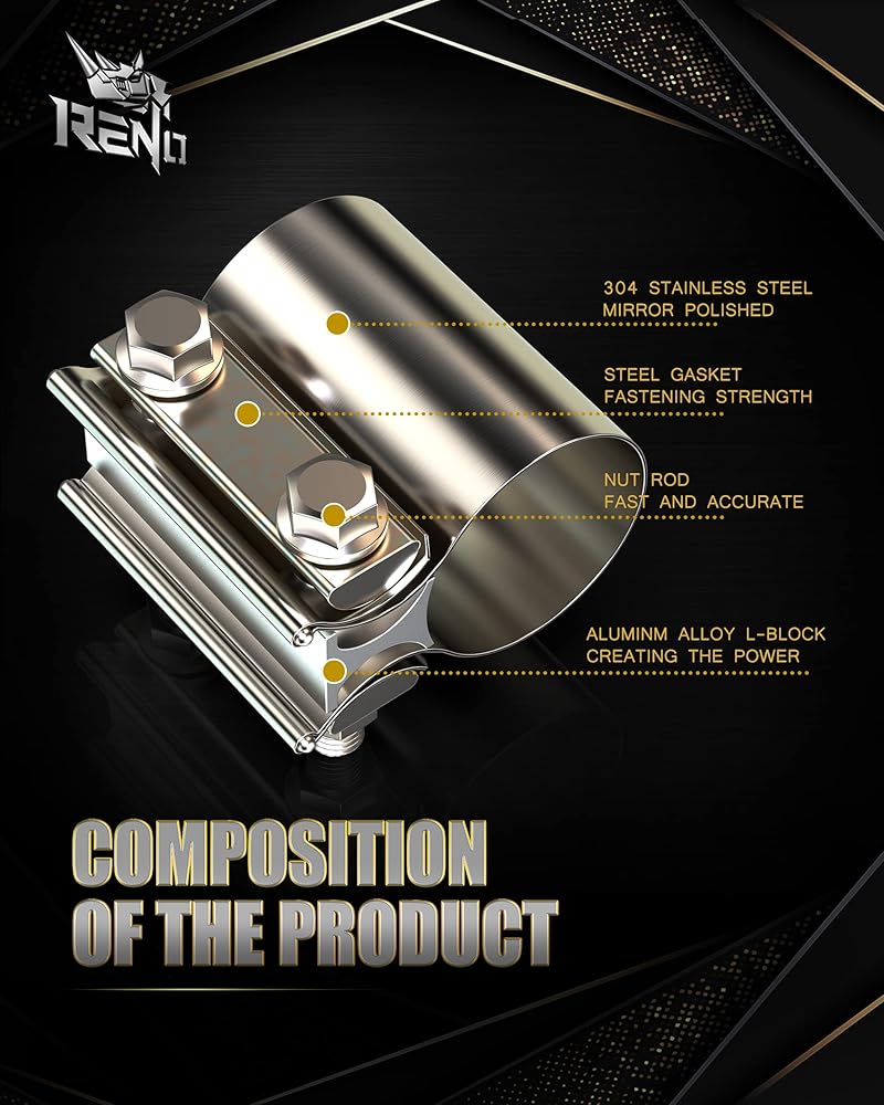 الميزة: جزء إصلاح كاتم صوت مشبك عادم المفصل الموزع في جميع أنحاء 360 درجة، يوفر ختمًا ويمنع التسرب، ويمنع تشوه المواد. مشبك عادم RENO قابل للإزالة وإعادة الاستخدام.
