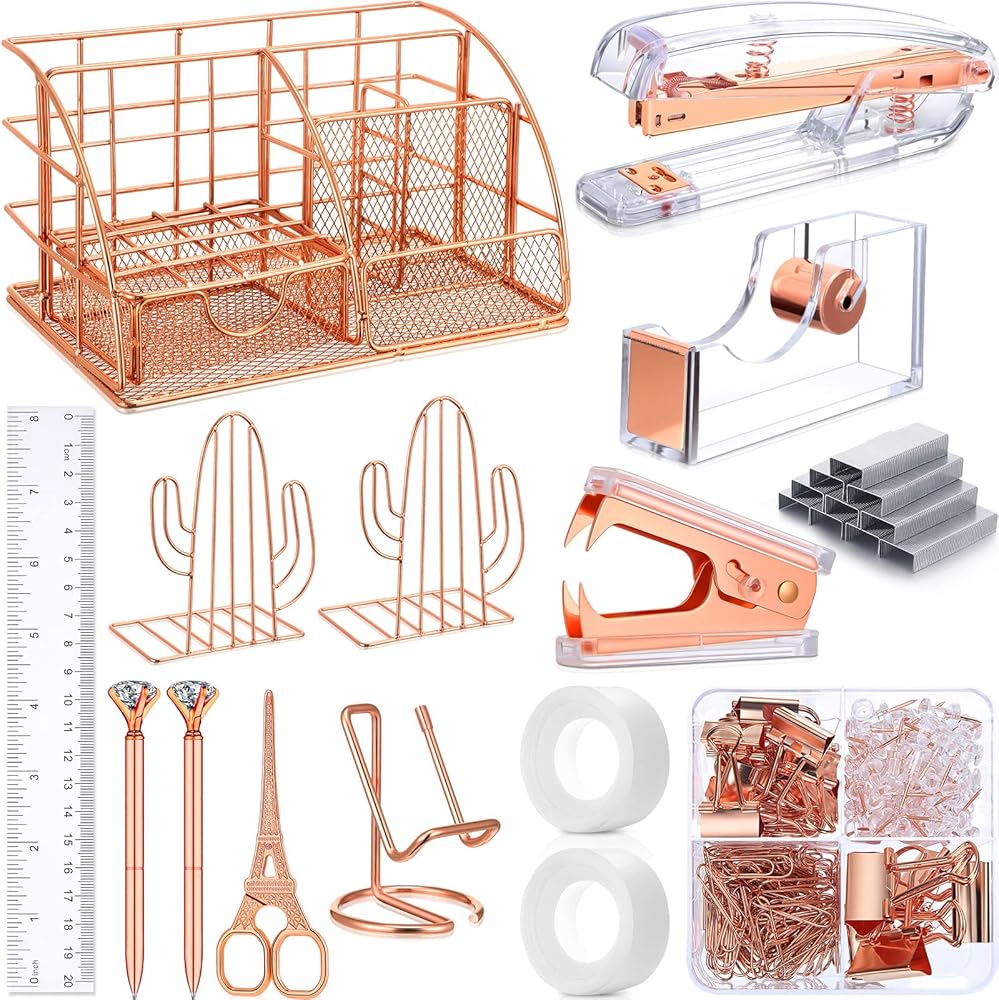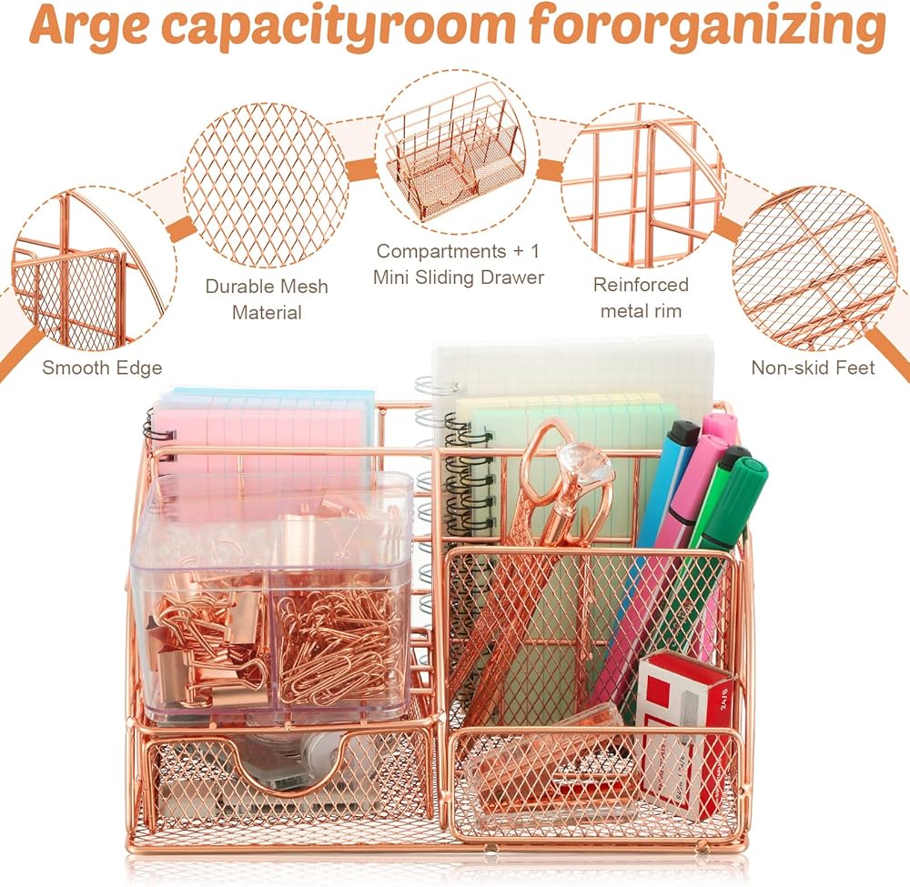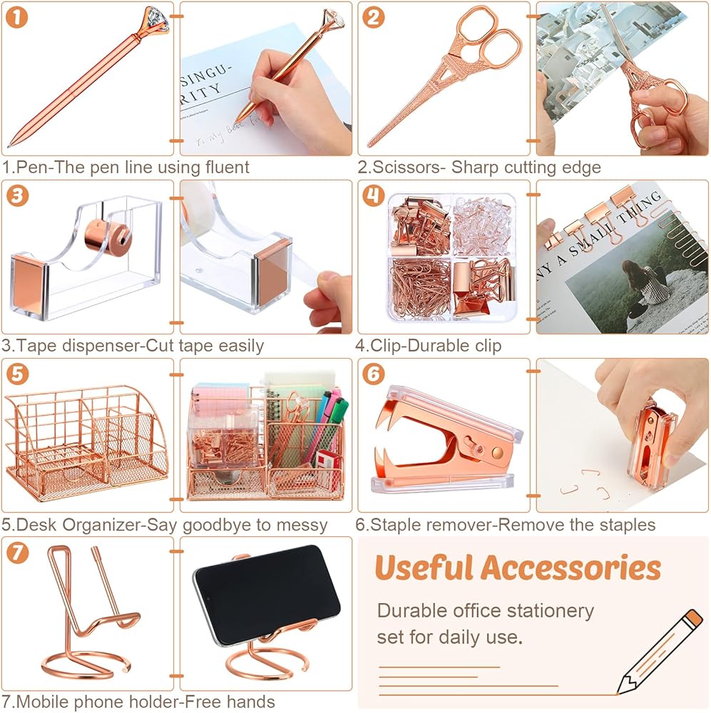 Our rose gold desk accessories set can install in seconds without other tools, the drawers can slide in and out smoothly, and the rose gold desk storage organizer comes fully assembled, just remove, which is convenient, and it also has a drawer tray, which can be applied in different places, and can store your things.
