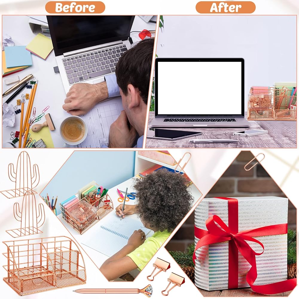 There are rubber feet at the bottom of the desk accessories, which can be stable against the desktop, will not scratch the desktop, and will not rust in a humid environment, if you want to make your work add some atmosphere, this cute desk organizer is suitable for you.