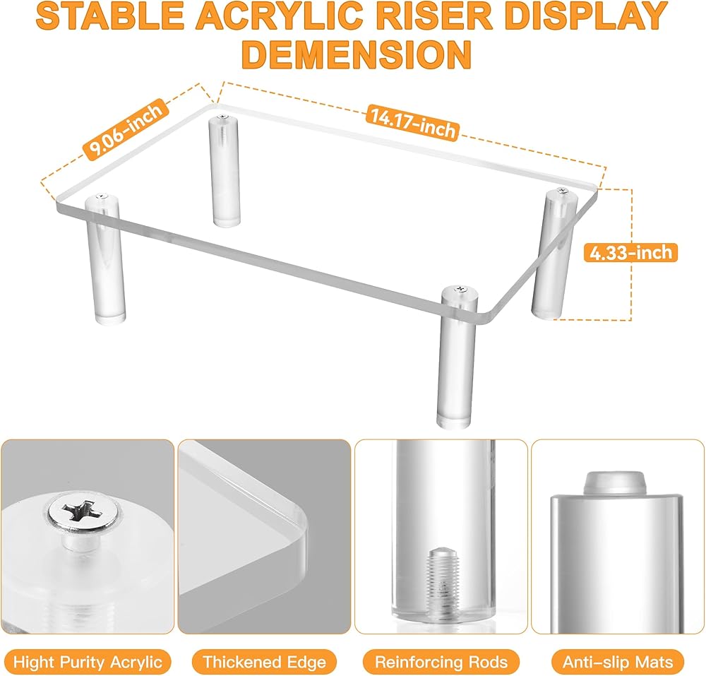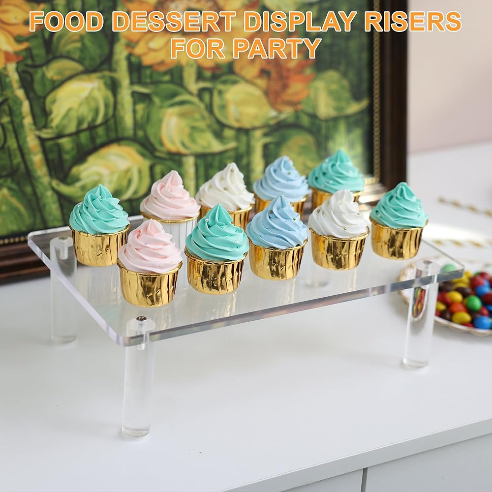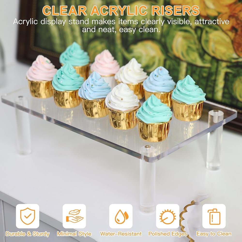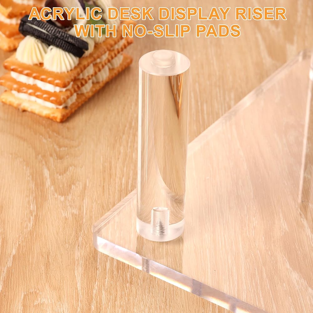 【رافعات أكريليك شفافة】رافعات عرض أكريليك تجعل العناصر مرئية بوضوح وجذابة وأنيقة. لن تخدش الناهضات الأكريليكية للعرض ذات الأسطح والحواف الملساء سطح الطاولة. يمكن لحامل الرف الشفاف تنظيم وعرض أغراضك على طاولة الطعام، والخزائن، والخزائن، والحفلات، والمطبخ، وما إلى ذلك. يمتزج الأكريليك الشفاف مع الديكور الخاص بك، ويوفر تأثيرًا بصريًا جميلاً.
