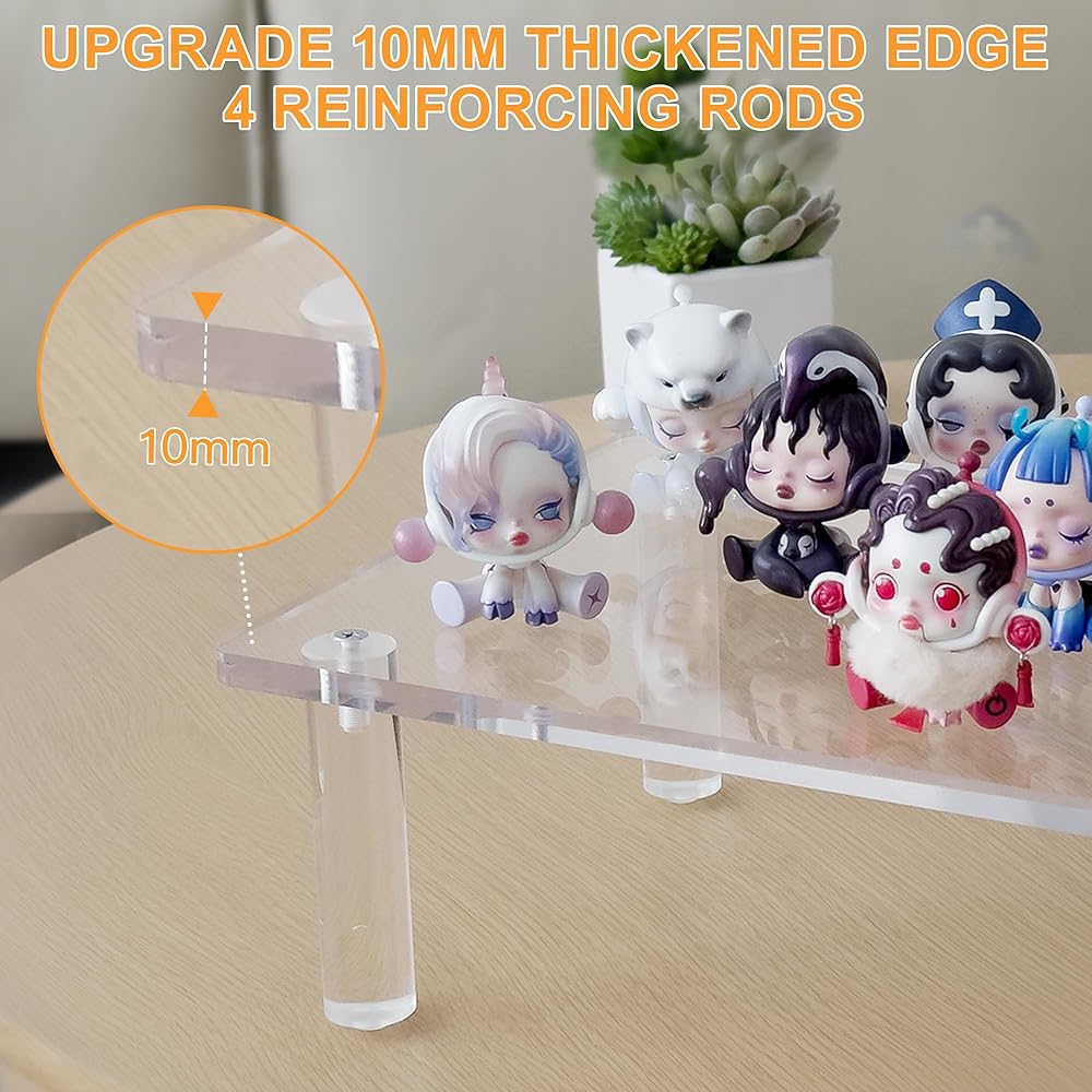 【ترقية الحافة السميكة 10 مم】ألواح الأكريليك الخاصة بنا بسمك 10 مم عالية النقاء، وسمك عالي، ومادة أكريليك شفافة للغاية، والتي ليس من السهل أن تتحول إلى اللون الأصفر أو تنكسر، وهي متينة ومستقرة للعرض. حواف الزوايا الناعمة السطحية دون خدش والتصميم الشفاف يمكن أن يكمل أي ديكور، مما يجعل منتجك محط الاهتمام. (يوجد غشاءان واقيان رفيعان على حاملات الشاشة، يرجى إزالتهما قبل الاستخدام.)