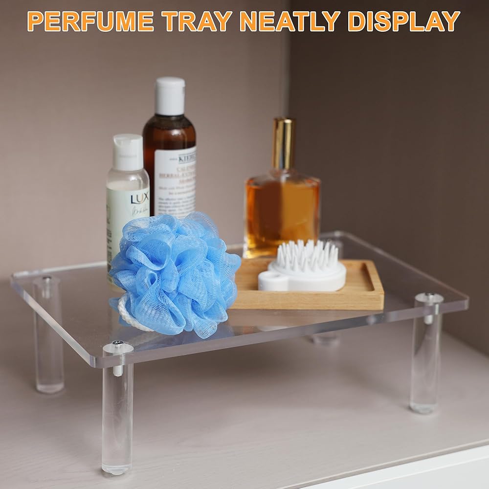 【تستخدم على نطاق واسع】تستخدم حوامل العرض الأكريليك الاستخدام الفعال لمساحة المنضدة الخاصة بك. يُعد حامل العرض الشفاف هذا مثاليًا لعرض تماثيل الألعاب في الخزانات والاحتفال بحلويات الحفلات وعرض مستحضرات التجميل على خزانة الملابس. يساعد حامل الصينية على خلق ميزة لافتة للنظر لأغراضك، مثل المجموعات، وشخصيات البوب، والكب كيك، والنظارات الصغيرة، والحرف اليدوية، وطلاء الأظافر، والعطور، والكولونيا والمزيد. يمكنك عرض مجموعتك بمرونة وبالطريقة التي تريدها!