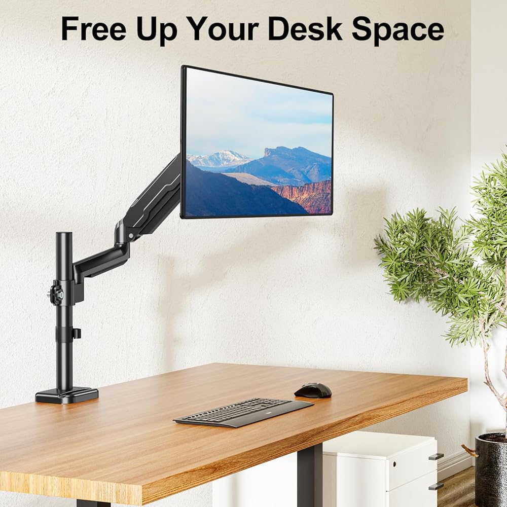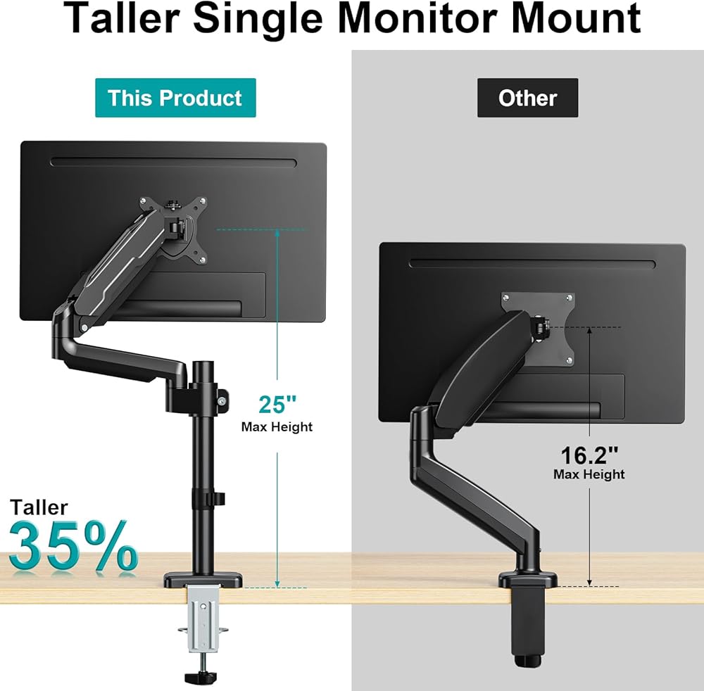 حامل شاشة واحد MOUNT PRO، حامل ذراع شاشة على المكتب لشاشة كمبيوتر 13-32 بوصة، ذراع شاشة طويل قابل للتعديل مع أقصى ارتفاع 25 بوصة، يحمل 4.4-19.8 رطل، حامل VESA كامل الحركة 75x75/100x100 مم