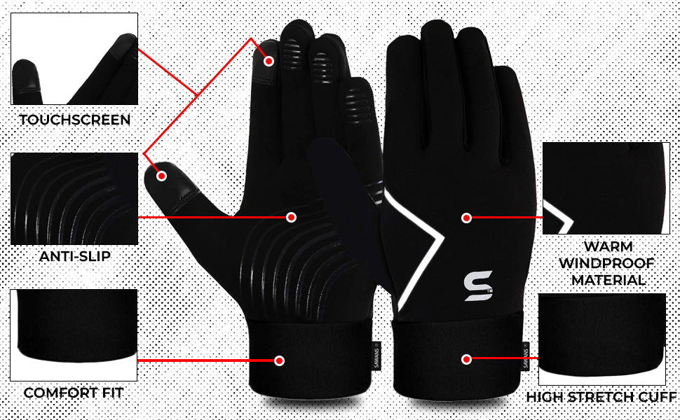 قفازات الجري، قفازات الشتاء للرجال والنساء، شاشة لمس مضادة للانزلاق، خفيفة الوزن، بطانة صوف سميكة، مقاومة للرياح، المشي لمسافات طويلة في الهواء الطلق، قفازات التدريب الحرارية