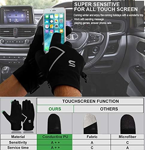 🔳SKIN Friendly - Winter gloves are made of softshell which is water resistance and protection from the wind, absorbent and quick drying comfortable lining for active use. The fabric is warmth fleece and very soft inside. The silicone coating on the palm makes cycling easy along running, driving, working outside and so on.