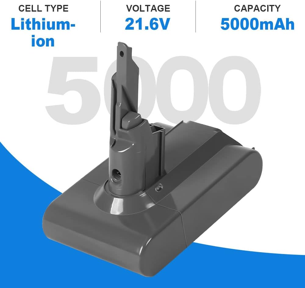 سعة حقيقية وعالية للغاية: بطارية ليثيوم أيون، 5000 مللي أمبير، 21.6 فولت. توفر البطارية البديلة المطورة وقت عمل أطول من النسخ الأصلية