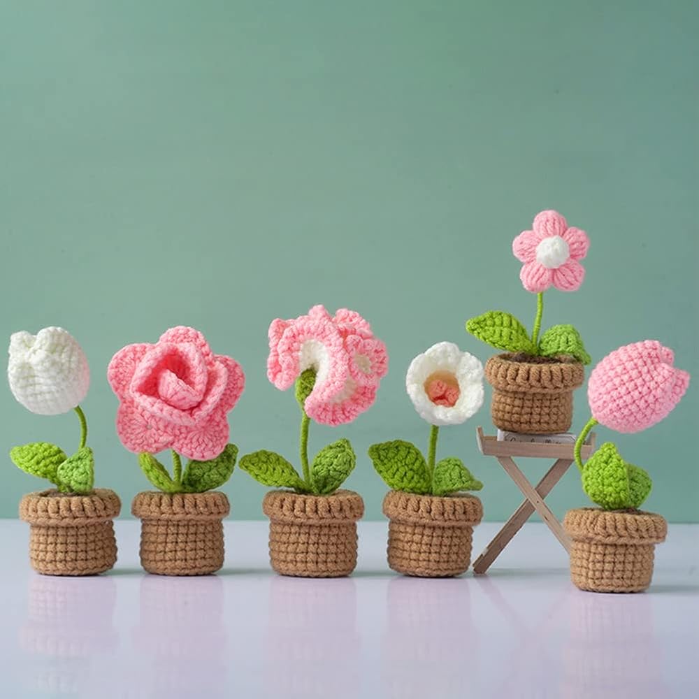 • 【Great Gift】These crochet potted flowers are great gifts for all ages. They can be used to decorate a home or office. You can share the fun and crochet with friends or make it yourself and give it away.