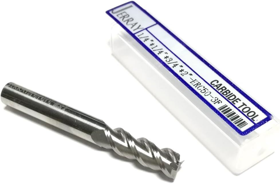 @ أدوات القطع المصنوعة HRC50 مطحنة نهاية من الكربيد الصلب للألمنيوم والمعادن غير الحديدية الأخرى، 3 مزامير، حلزون 45 درجة، ساق 1/4 بوصة، طول القطع 3/4 بوصة، الطول الإجمالي 2 بوصة
