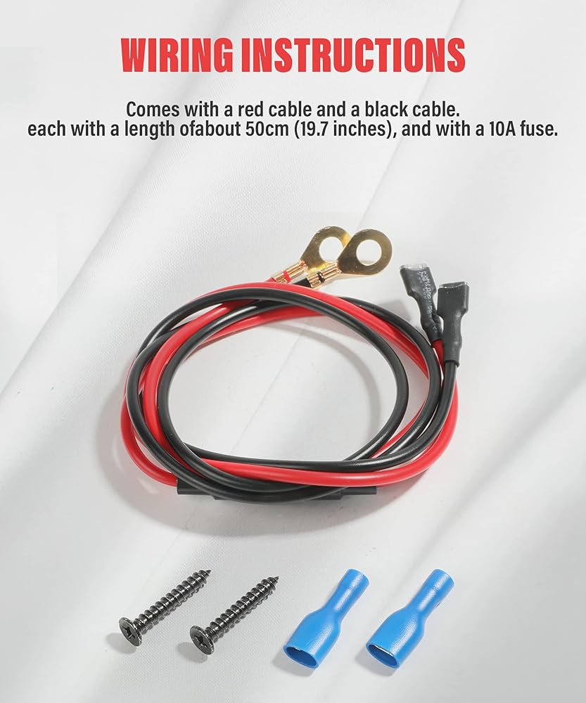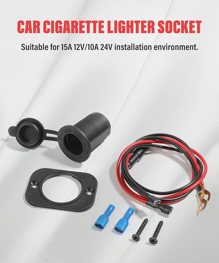 [Inline Fuse]The car cigarette lighter socket will be equipped with suitable wiring harnesses, and each set of wires will include a 10A inline fuse in the red cable, providing better protection for your car and equipment.