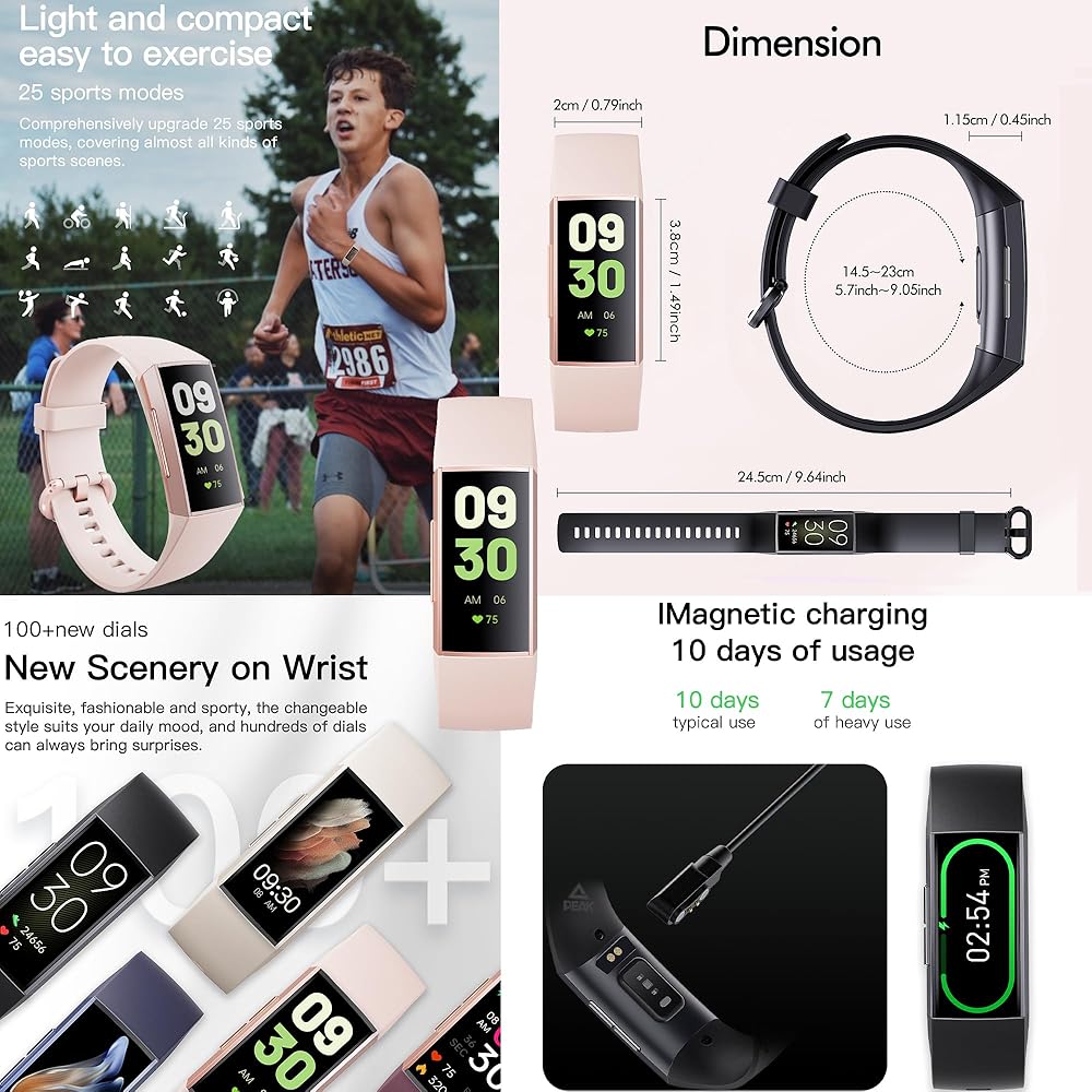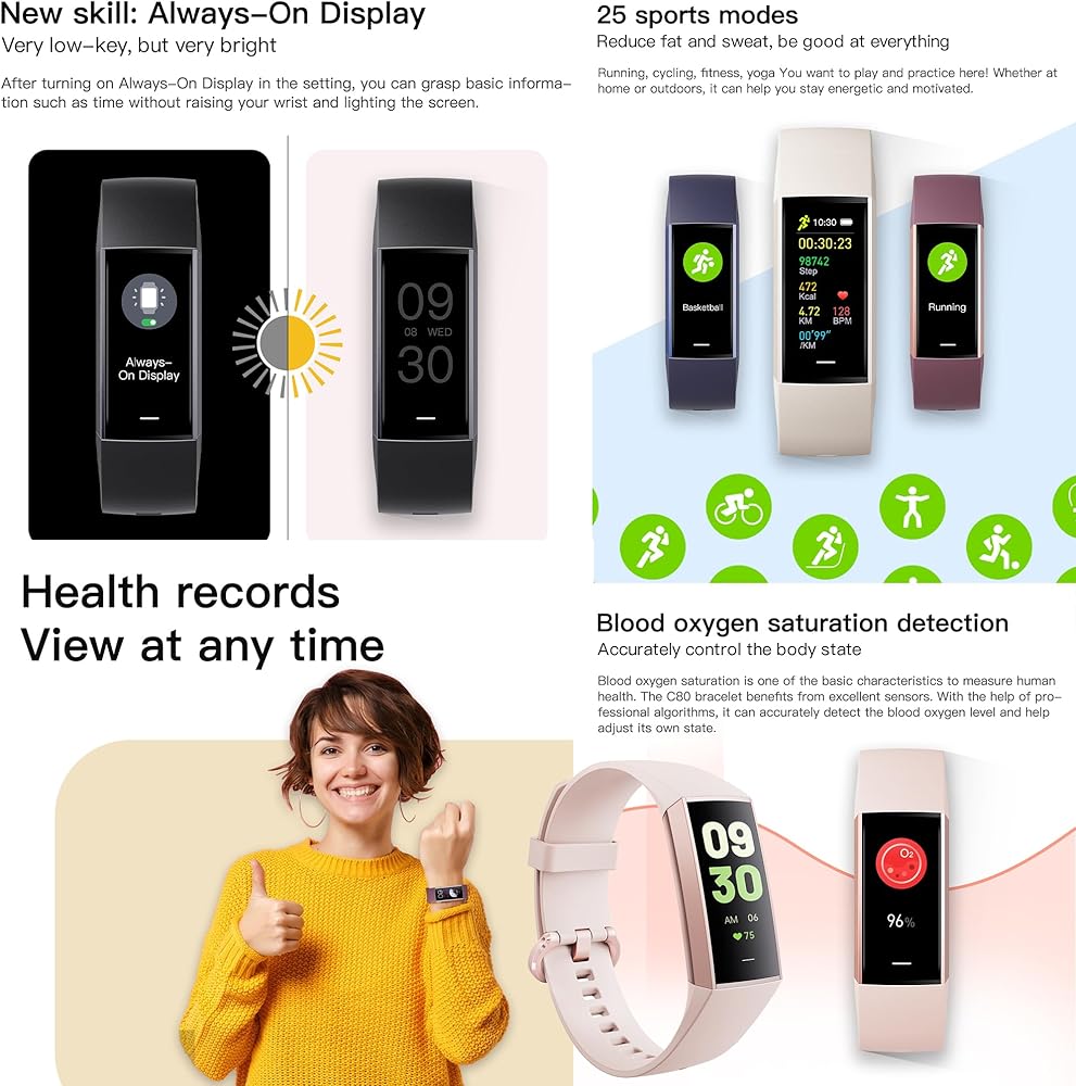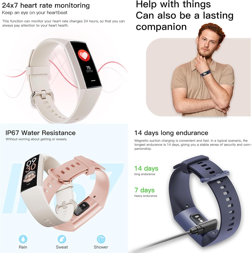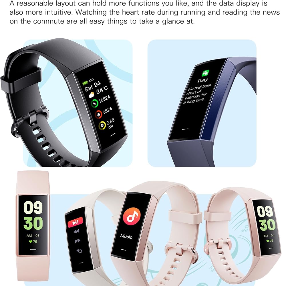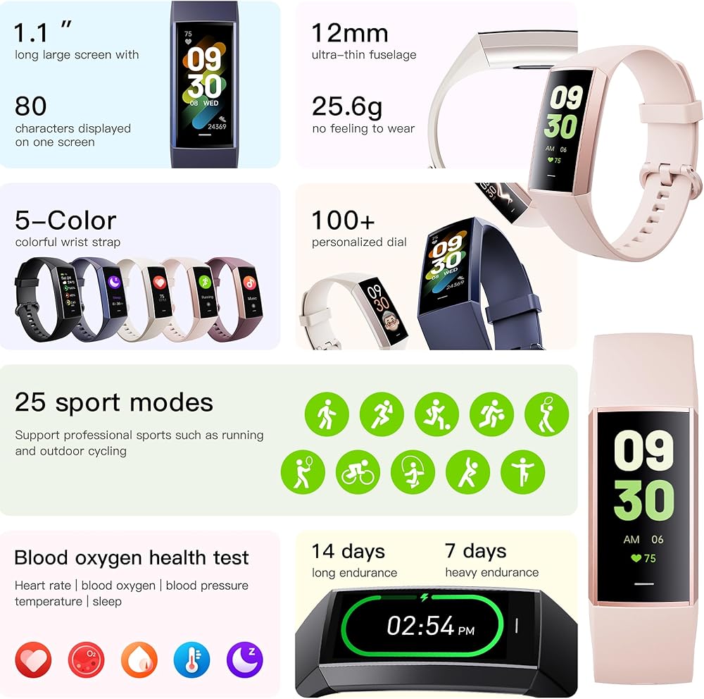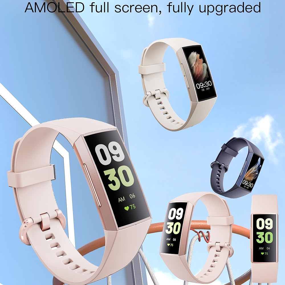 Fitness Tracker with Heart Rate Monitor, Step Counter, Sleep Monitor, Calorie Tracking, Activity Tracker with 1.1" AMOLED Touch Color Screen, Waterproof Step Tracker for Android iPhones Women Men