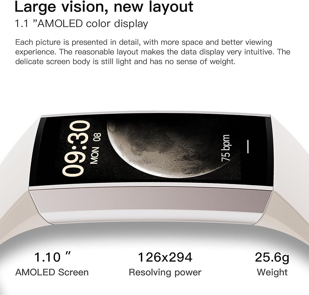 2. Stylish and Simple Appearance, 1.1" AMOLED Full Touch Screen: