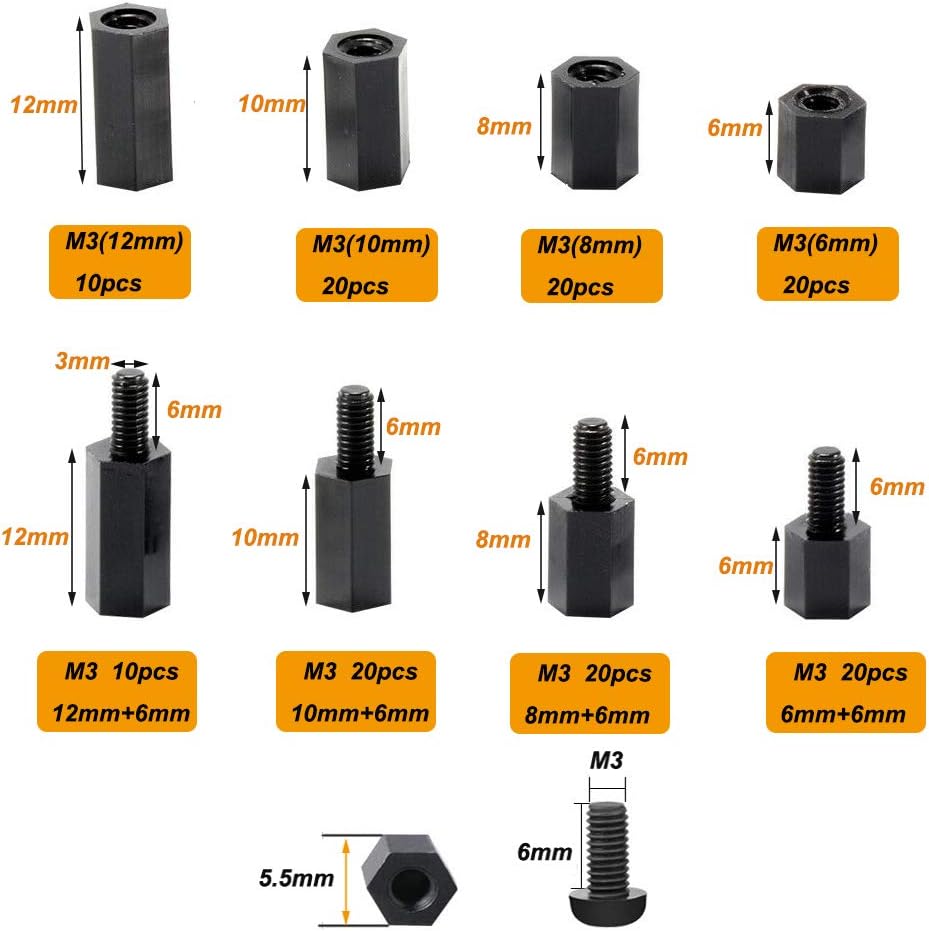 1. 300pcs M3 Black Nylon Hex Spacers Standoffs/ Screws/ Nuts Assorted Kit