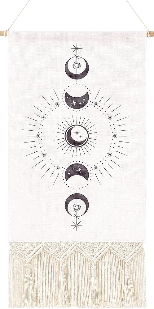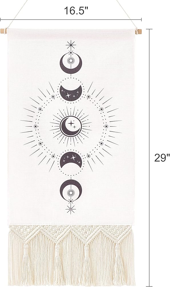• Idea Gift: The Moon Tapestry by simple and elegant design with handmade macrame fringe be a decorative wall art. It will be a wonderful gift for family or friends, great for housewarming, birthday, Christmas, New Year's Day and more.