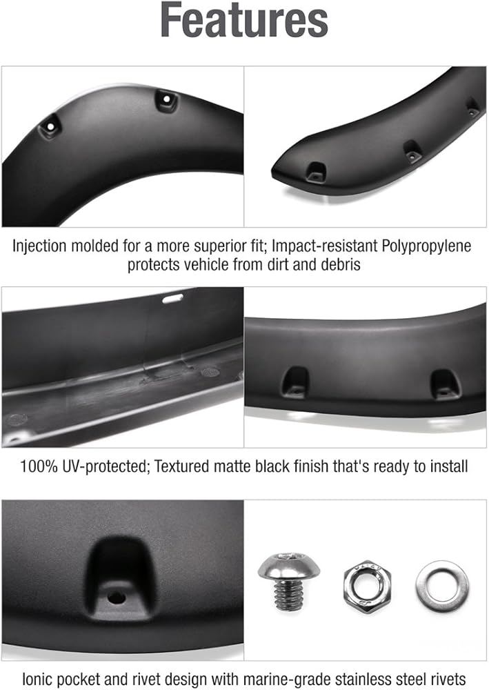 [النهاية] 4 قطع من التوهجات الواقية من الأشعة فوق البنفسجية بنسبة 100% قابلة للطلاء | ارتفاع التوهج: 5.5 بوصة في الأمام و4.5 بوصة في الخلف. تغطية الإطار: 2.5 بوصة في الأمام والخلف.