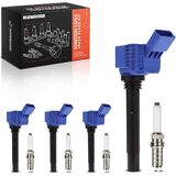 مجموعة ممتازة مكونة من 4 ملفات إشعال وشمعات إشعال إيريديوم متوافقة مع فولكس فاجن جيتا باسات جولف بيتل أودي A3 A4 A5 A6 TT Quattro Q5 Q7 2.0L