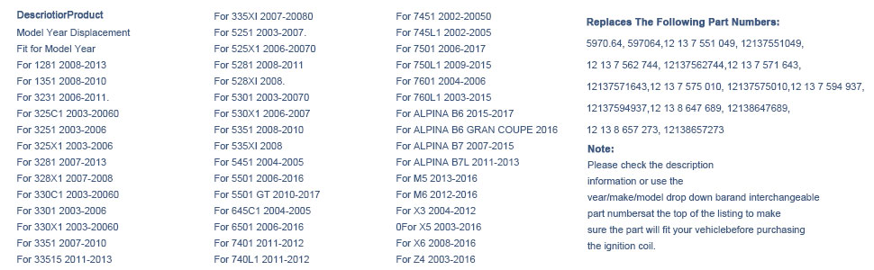 【ملاحظة】 - يرجى التحقق من التعليمات ومخطط التوافق قبل الشراء. نحن نقدم ضمانًا لمدة عام على جميع ملفات الإشعال. إذا كان لديك أي أسئلة حول منتجاتنا، يرجى الاتصال بنا