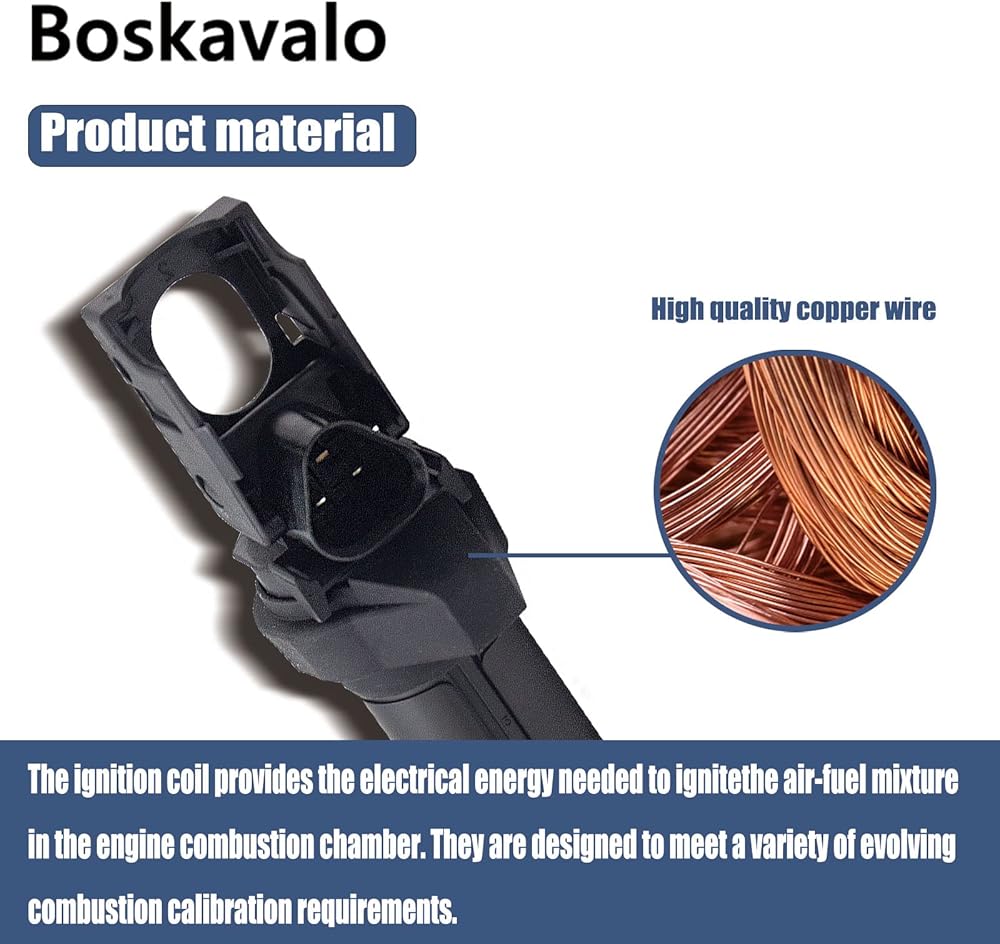 【حزم ملفات الإشعال البديلة】توفر ملفات الإشعال شرارة لمحركك. تتميز الملفات بأنها متينة وعالية الكفاءة، كما أنها تقلل من استهلاك الوقود وتقلل من انبعاثات عادم سيارتك، كما أنها ستقضي على الأخطاء وتوفر أقصى جهد.