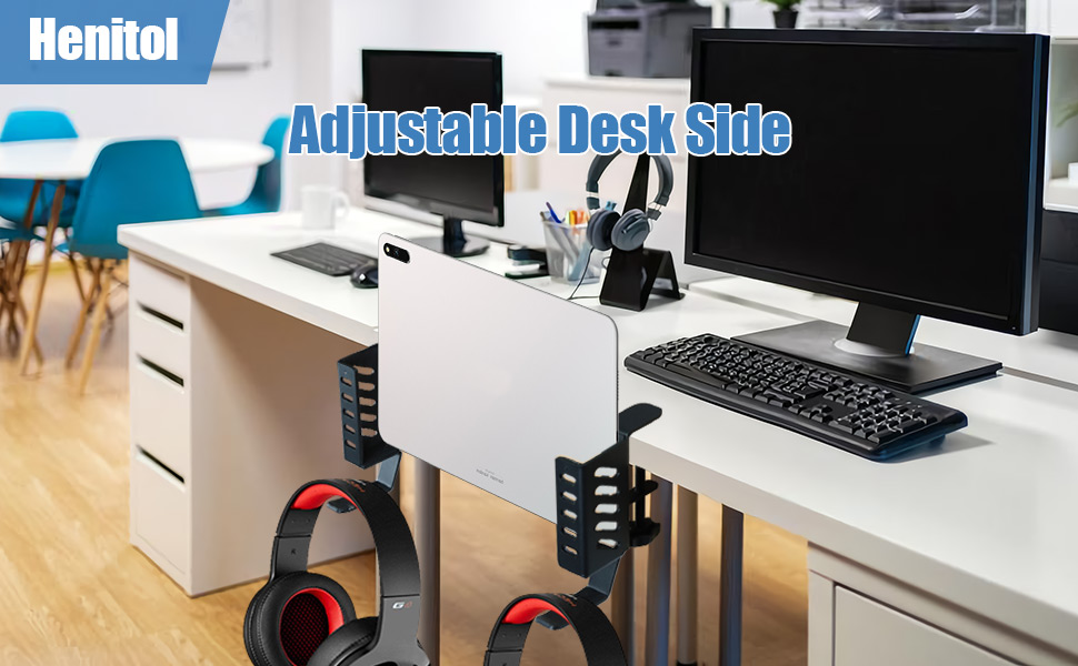 ✔ تصميم قابل للتعديل: يمكن تعديل المسافة بين الحاملين الجانبيين للمكتب وفقًا لطول العناصر التي تحتاج إلى تخزينها. يمكن تعديل صينية الكمبيوتر المحمول الموجودة أسفل المكتب إلى جانب المكتب لحمل الكمبيوتر المحمول والكمبيوتر اللوحي والأسلاك المخفية والأدلة والمستندات والدفاتر وغيرها من العناصر بسهولة.