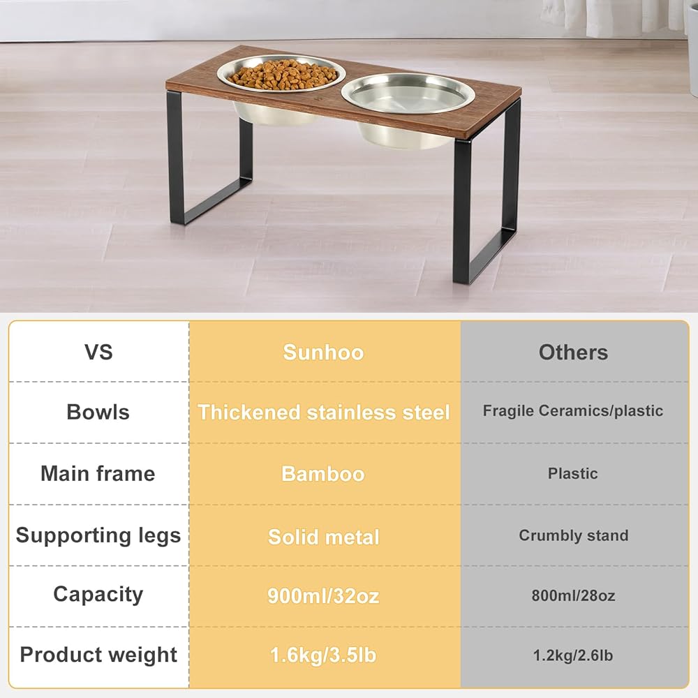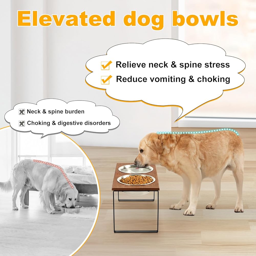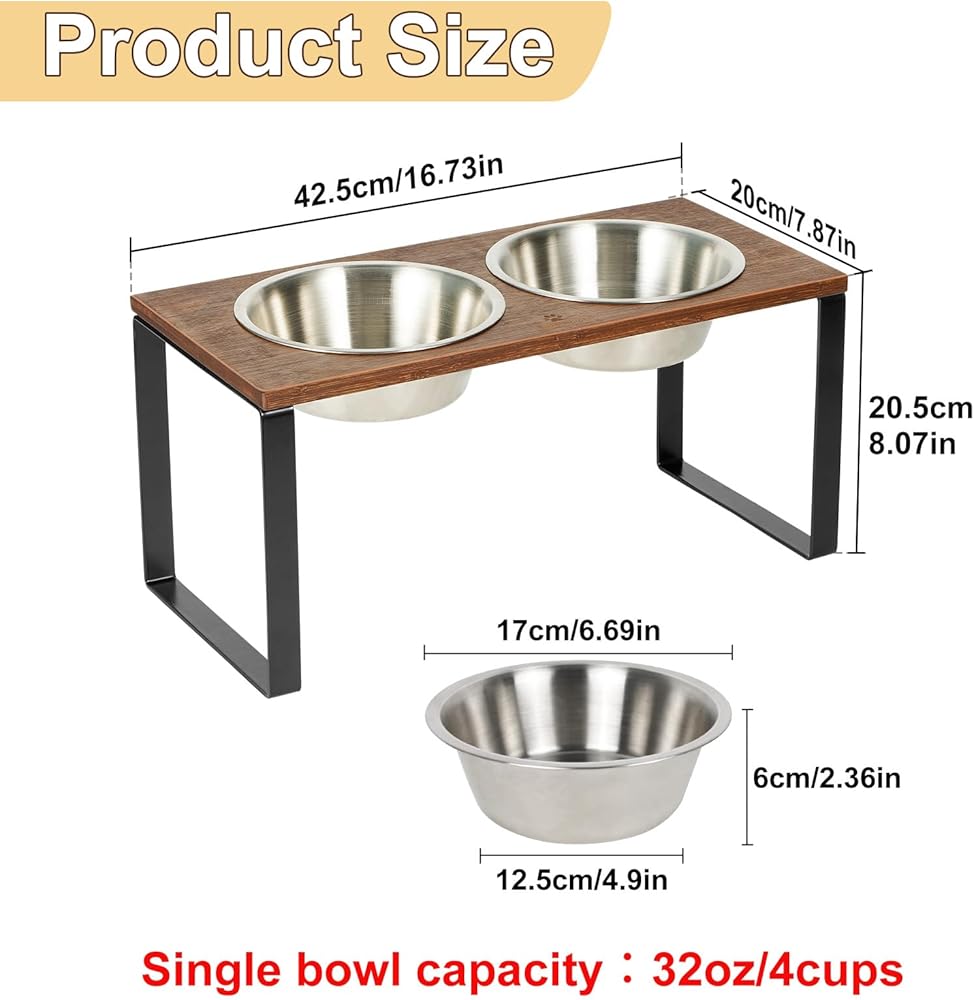 أوعية الكلاب المرتفعة من Sunhoo، وحدة تغذية مرتفعة للكلاب، حامل طويل القامة، محطة تغذية الحيوانات الأليفة الخشبية، 2 طبق من الفولاذ المقاوم للصدأ، معدن 16.73 * 7.87 * 8.07 بوصة، 32 أونصة غير قابلة للانزلاق شديدة التحمل