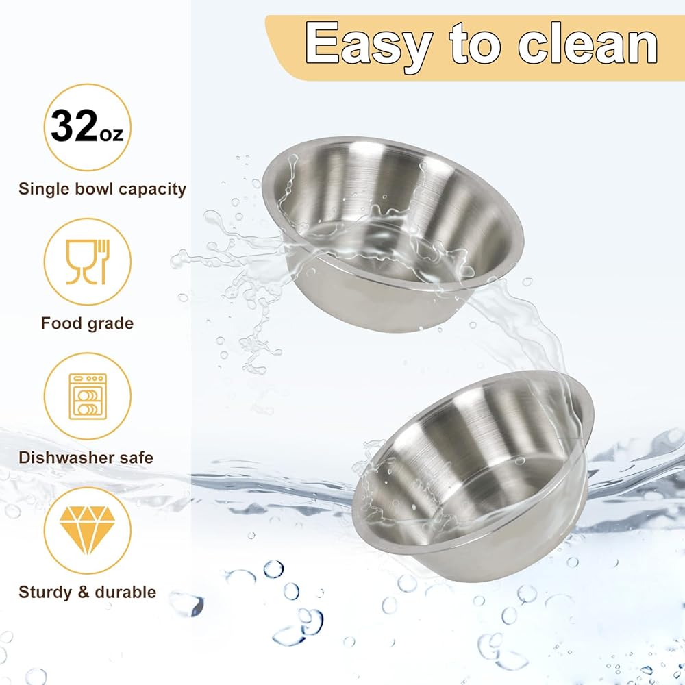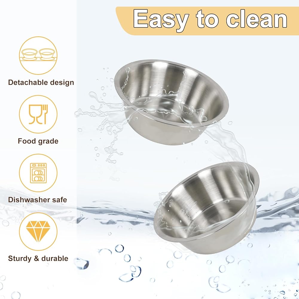 【آمن ومتين】وعاء الكلب مصنوع من الفولاذ المقاوم للصدأ الآمن غذائيًا، وهو خفيف الوزن وآمن للاستخدام في غسالة الأطباق وليس من السهل كسره. كما يسهل إخراج الأطباق القابلة للفصل للتنظيف اليومي. السعة (900 مل/32 أونصة) تلبي احتياجات معظم الكلاب. إطار الخيزران المعالج بالورنيش، عديم الرائحة ومضاد للتشوه وخالي من الأشواك، مما يجعله أكثر أمانًا لاستخدام الحيوانات الأليفة.