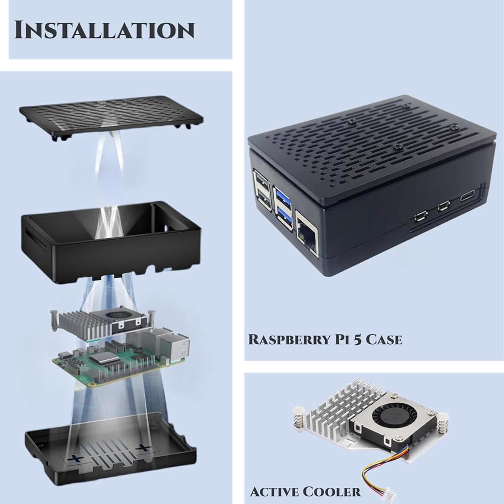 مبرد V5 داخل علبة ABS. يجمع مبرد Armor Lite V5 بين المبدد الحراري المصنوع من الألومنيوم ومروحة PWM. تختلف عن المراوح العادية، حيث تدعم مروحة PWM تنظيم سرعة PWM، وهو متوافق تمامًا مع نظام التشغيل Raspberry Pi OS. مع 3510 مروحة تبريد فائقة الهدوء ووسادات حرارية، يمكنها خفض درجة حرارة لوحة Raspberry Pi بسرعة.