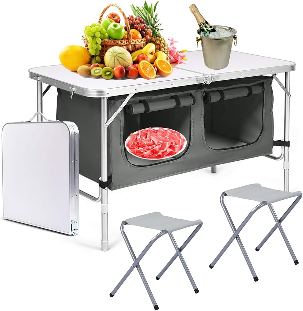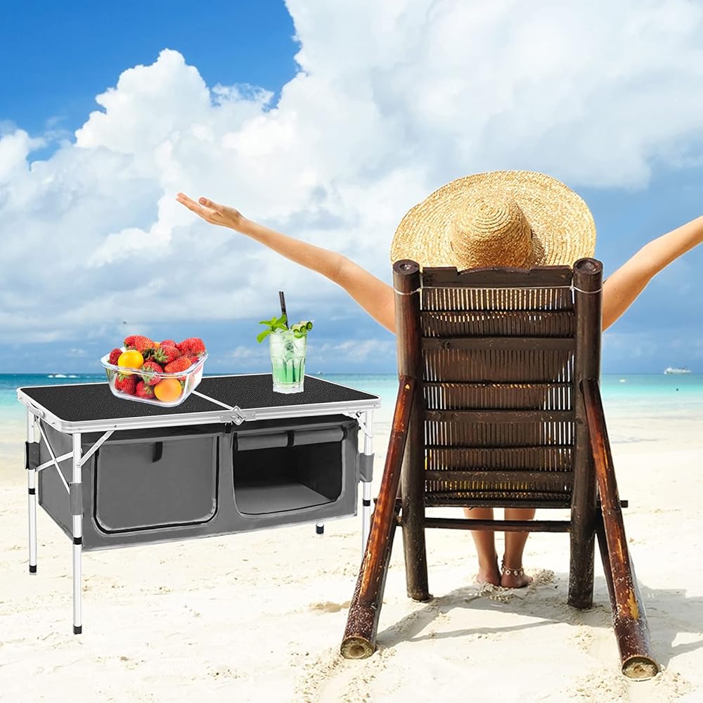【CONVENIENT STORAGE】Our folding outdoor table is equipped with a oversized storage bag, you can put barbecue ingredients, fresh fruits and other dark food and all kinds of food, drinks or cutlery. Besides, Zipper design also prevents items from falling out.