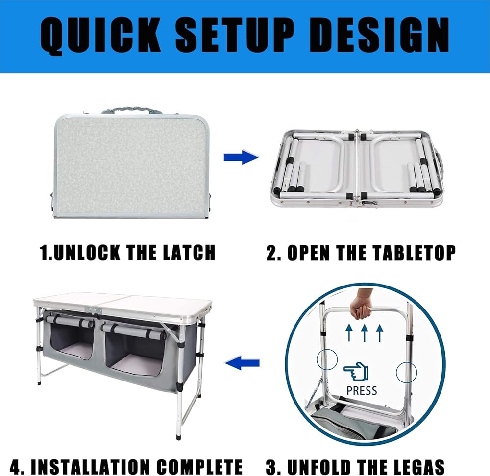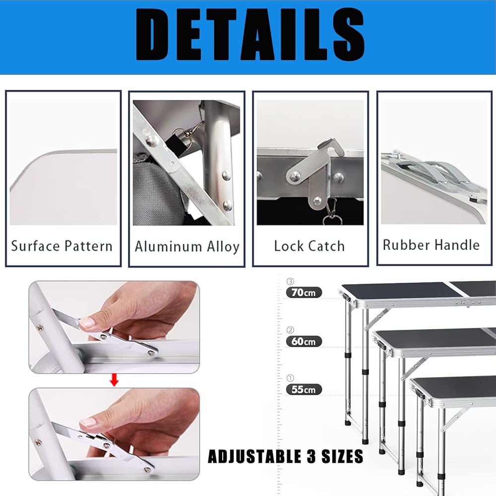 【EASY TO CARRY AND FOLD UP】The compact size allows you to put it in the back of your car or store it anywhere. In addition, light weight and comfortable handle make it more convenient and safe to carry. Good choice for outdoor,camping, picnics, BBQ,fishing,hiking,party, this folding camping table is a versatile addition to your outdoor gear collection, this foldable camping table is a must-have accessory for any outdoor adventure.