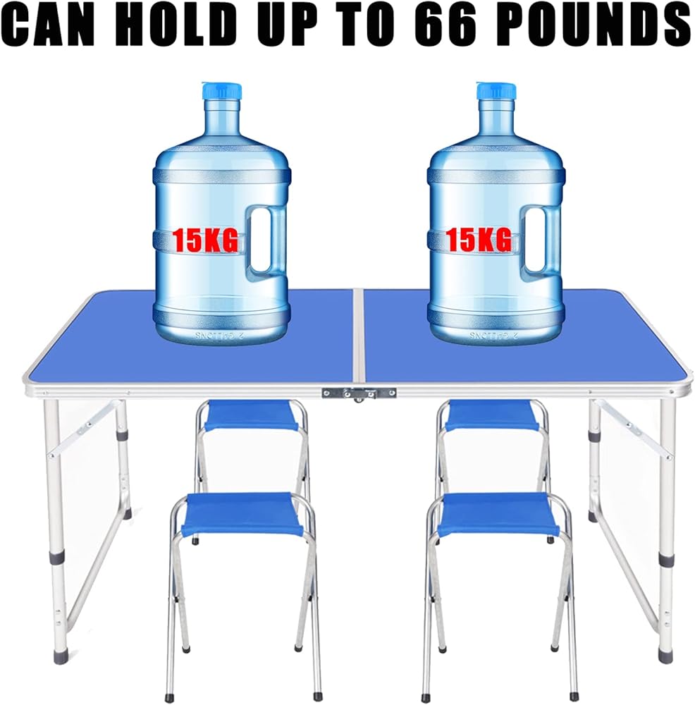 【STRONG STRUCTURE LIGHTWEIGHT AND DURABLE】Our folding table can hold a weight of 66lbs(30kg).The material of table top also waterproof,and any spills to be cleaned easily.