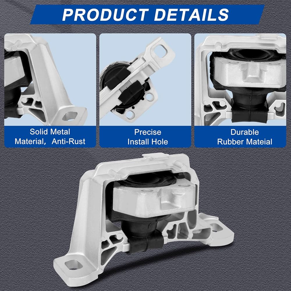 【مادة ممتازة】حامل محرك المحرك مصنوع من سبيكة ومطاط عالي الجودة، لضمان الموثوقية والثبات، ومقاوم للغاية للتآكل والتمزق، وليس من السهل تشويهه أو كسره. الأجزاء الداخلية صلبة ومتينة، وعمر خدمة طويل، مما يضمن قيادة سلسة وهادئة، واستبدال مباشر للجزء القديم أو المكسور، ويتوافق مع الأصل.
