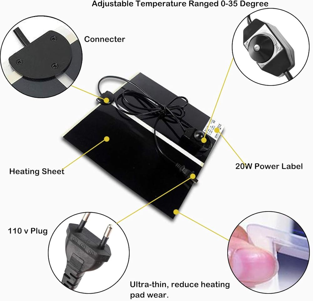 【الحجم ودرجة الحرارة】16.5 × 11 بوصة، تتضمن العبوة: 2 × وسائد حرارية للزواحف، مع مفتاح التحكم في درجة الحرارة، منظم حرارة تلقائي. التحكم في درجة الحرارة بين 0 إلى 35 درجة مئوية (32 درجة فهرنهايت إلى 95 درجة فهرنهايت).