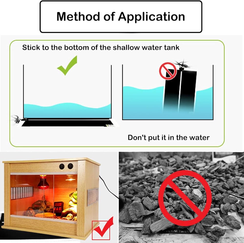 【سهلة الاستخدام】يمكنك تركيب وسادات حرارية للزواحف في الجزء السفلي أو الجانبي من الخزان. يتم وضع القدم المطاطية في الجزء السفلي من التثبيت لرفع الحاوية الزجاجية قليلاً ويمكن انبعاث الحرارة المتبقية.