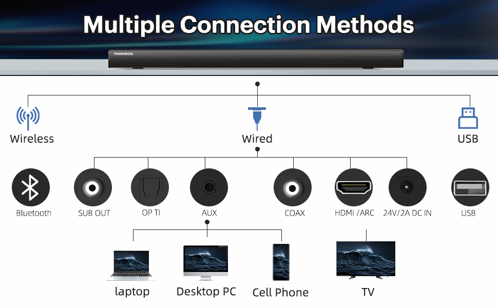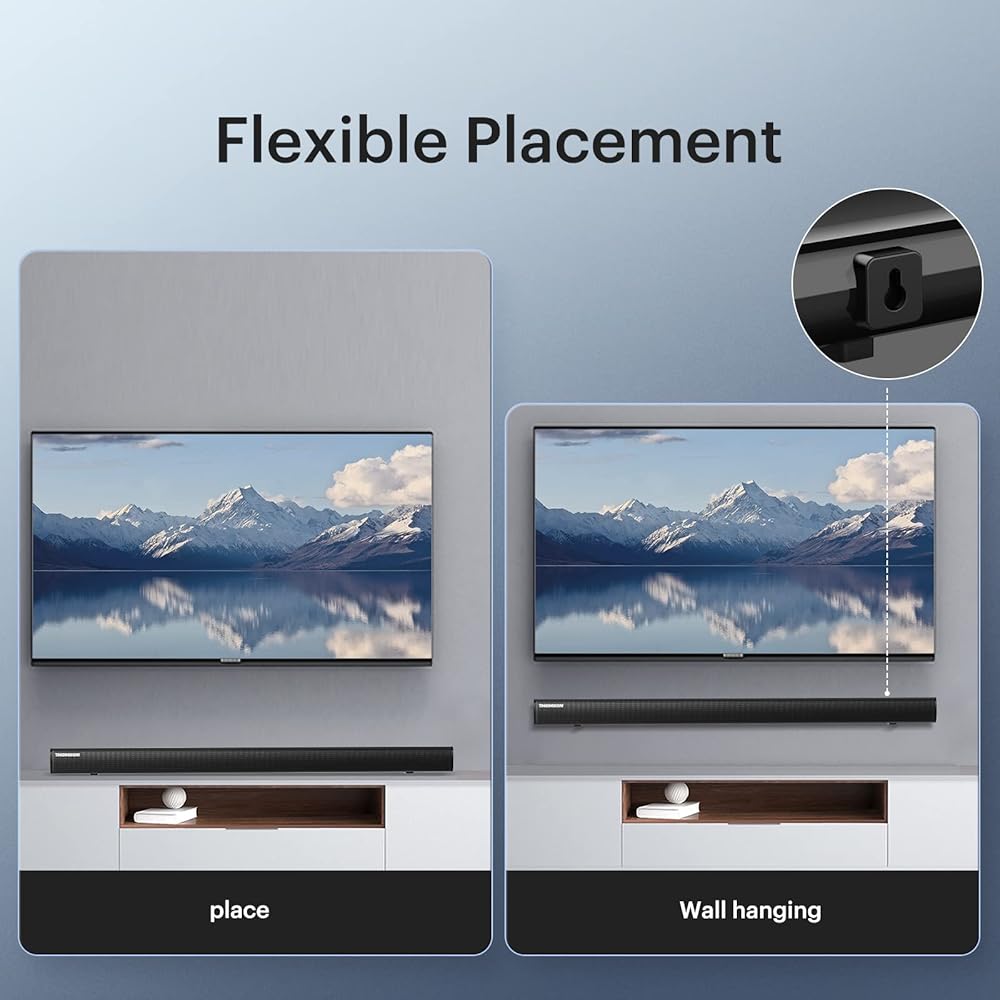 [تصميم وجودة رائعة] مكبر صوت طومسون مصنوع من مادة ABS عالية الجودة، مع تصميم نحيف موفر للمساحة بقياس 35 طولًا × 3.3 عرضًا × 2.4 ارتفاعًا وطول 5 سم لوضع مرن يمكن تركيبه إما أمام التلفزيون الخاص بك أو تثبيته على الحائط بقوة. يخضع مكبر الصوت الخاص بالتلفزيون لاختبارات جودة صارمة ومعالجة قبل إطلاق النظام لتستخدمه.