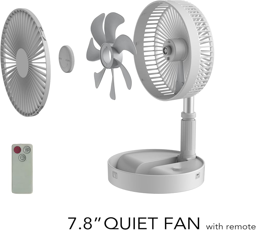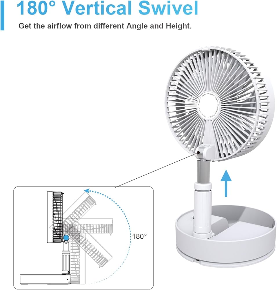 Foldable Portable& Convenient Storage : Compared with traditional wired desktop fans and standing fans, the portable foldable fan or desk and floor fan are easy to fold. After folding, they are very small, 8.07 * 4.1 inches in size and light weight which can be easily put into a backpack or drawer. Perfect for storing space saving or outdoor use (e.g. camping, beach, fishing, picnic, traveling, business trips, etc.)