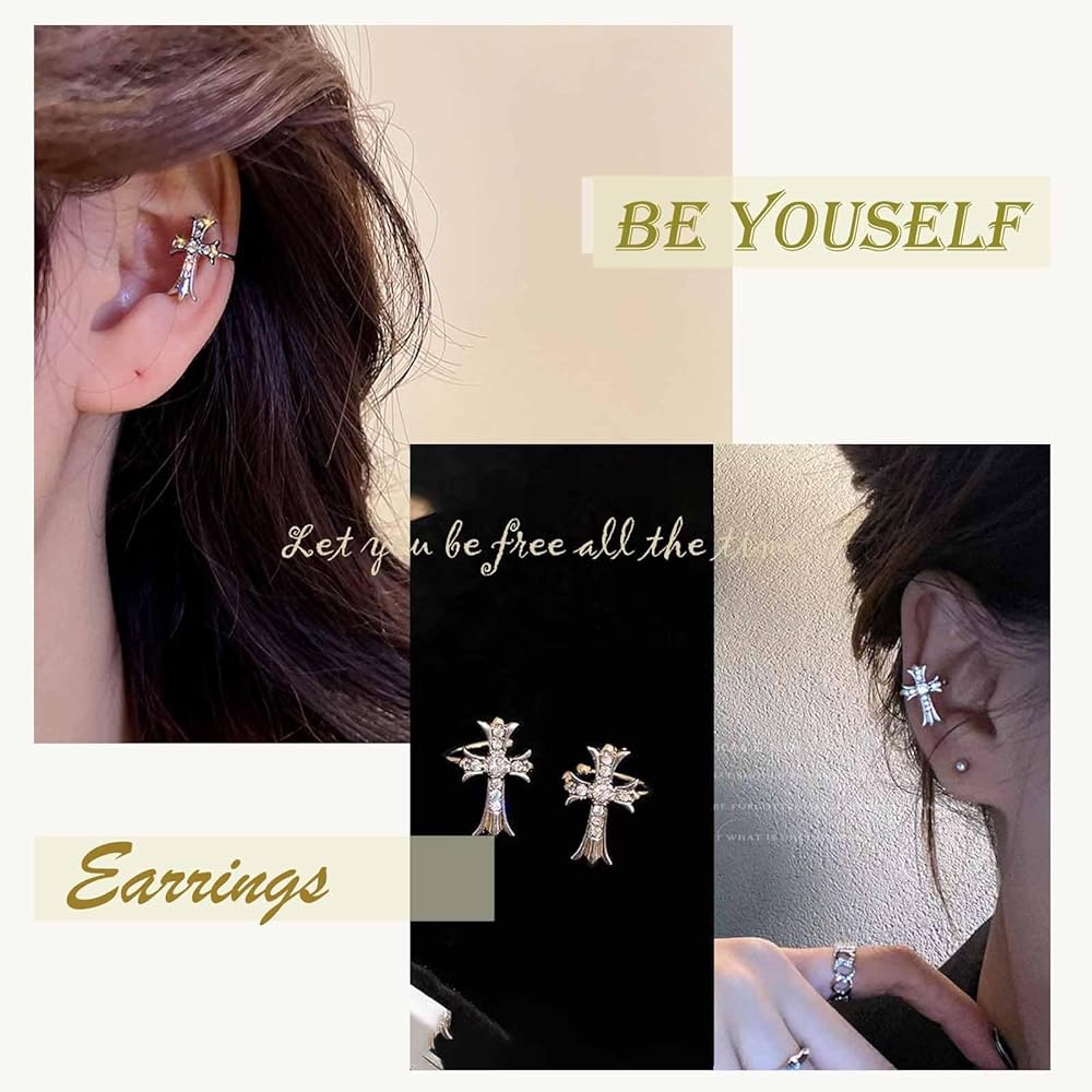 【Exquisite and Simple】Statement cross earrings perfectly highlight the beauty of this earring jewelry with cross cuff and rhinestone cross clip on earrings.