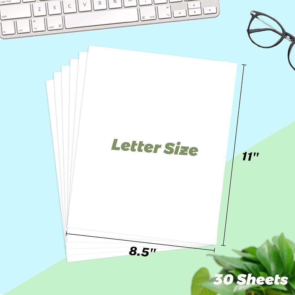 الحجم المثالي: حجم ورق طابعة الملصقات هو 8.5 بوصة × 11 بوصة، وملصق واحد لكل ورقة، إجمالي 30 ورقة.