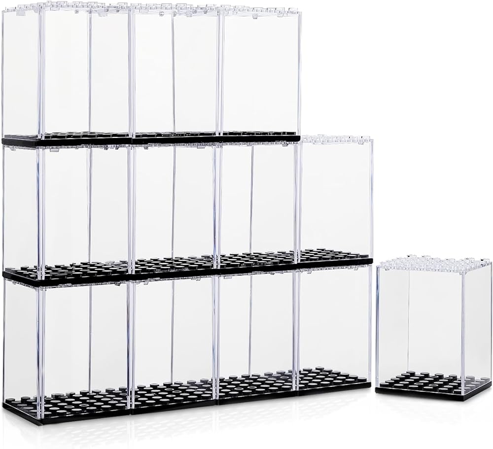 12PCS Minifigure Display Case for Action Figures Clear Acrylic Building Block Display Box Storage for Blocks Stackable Storage Case