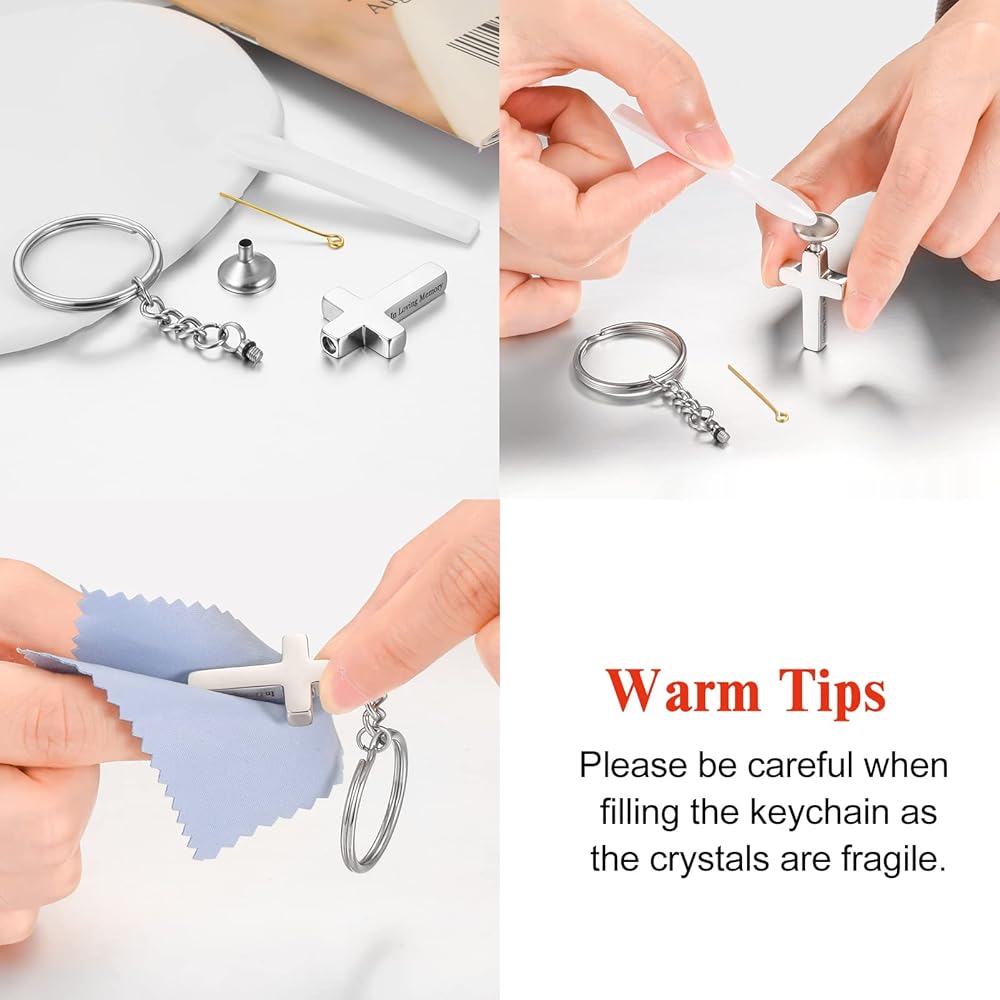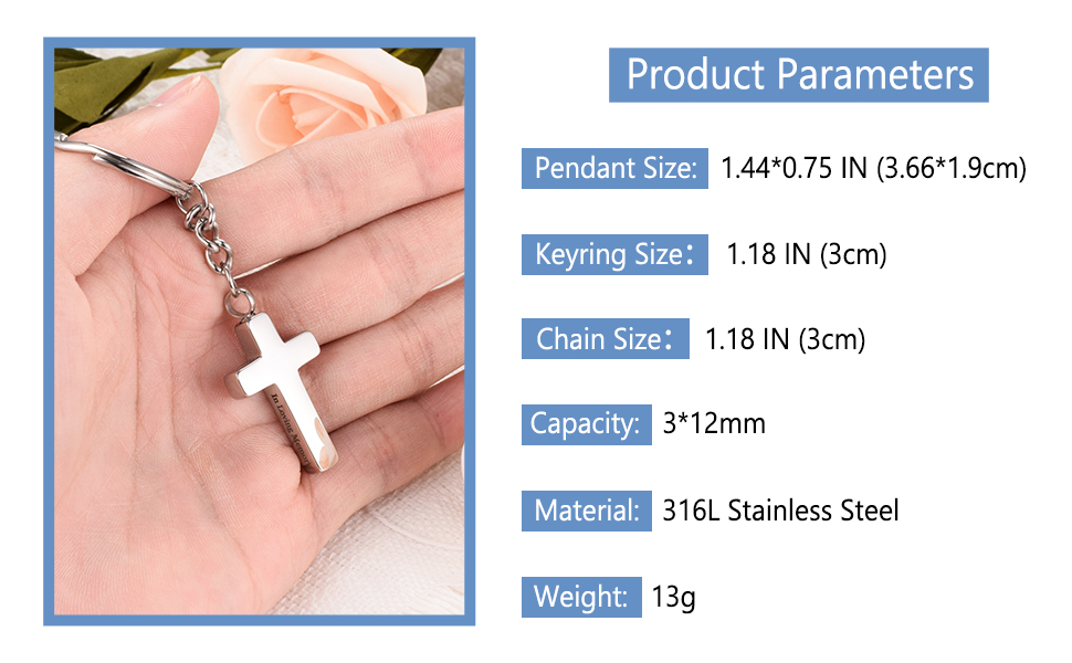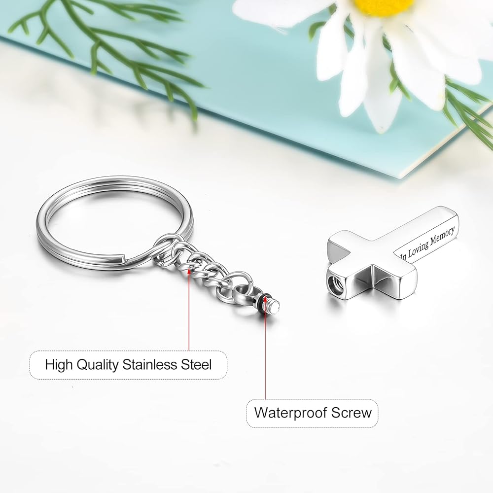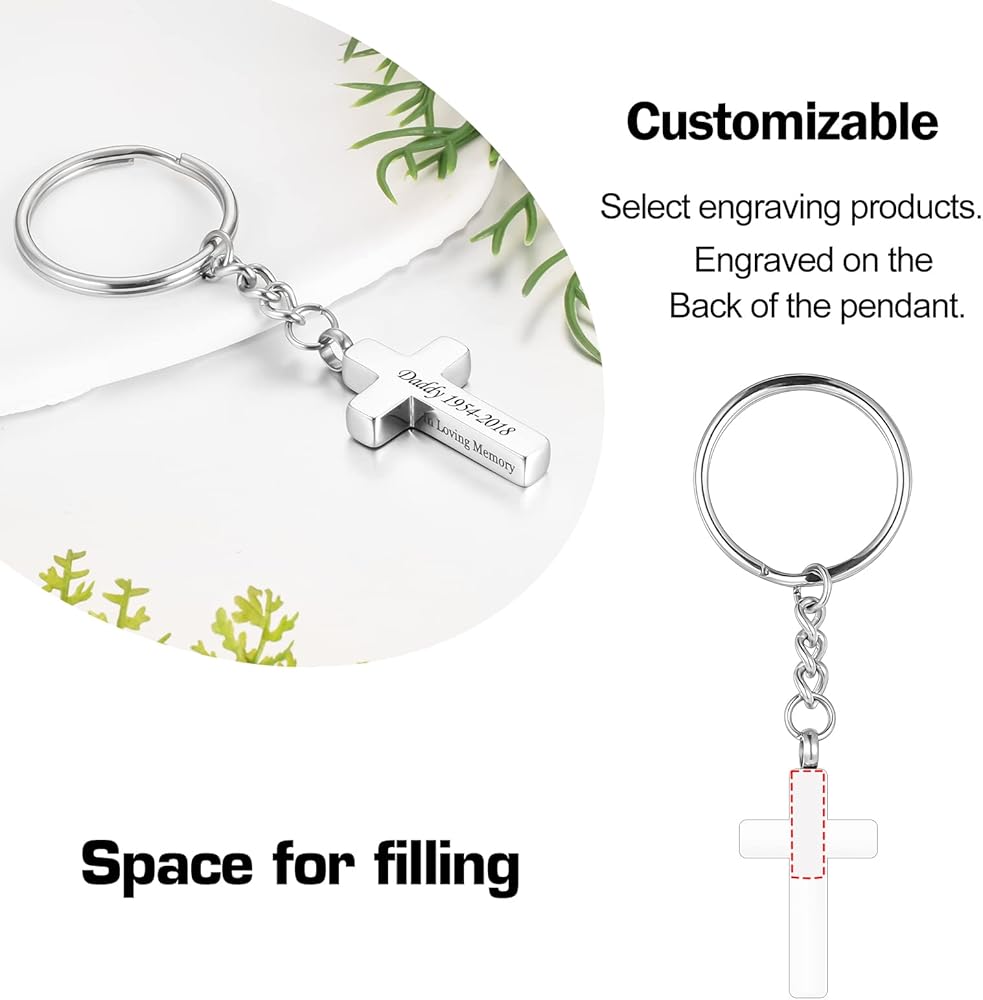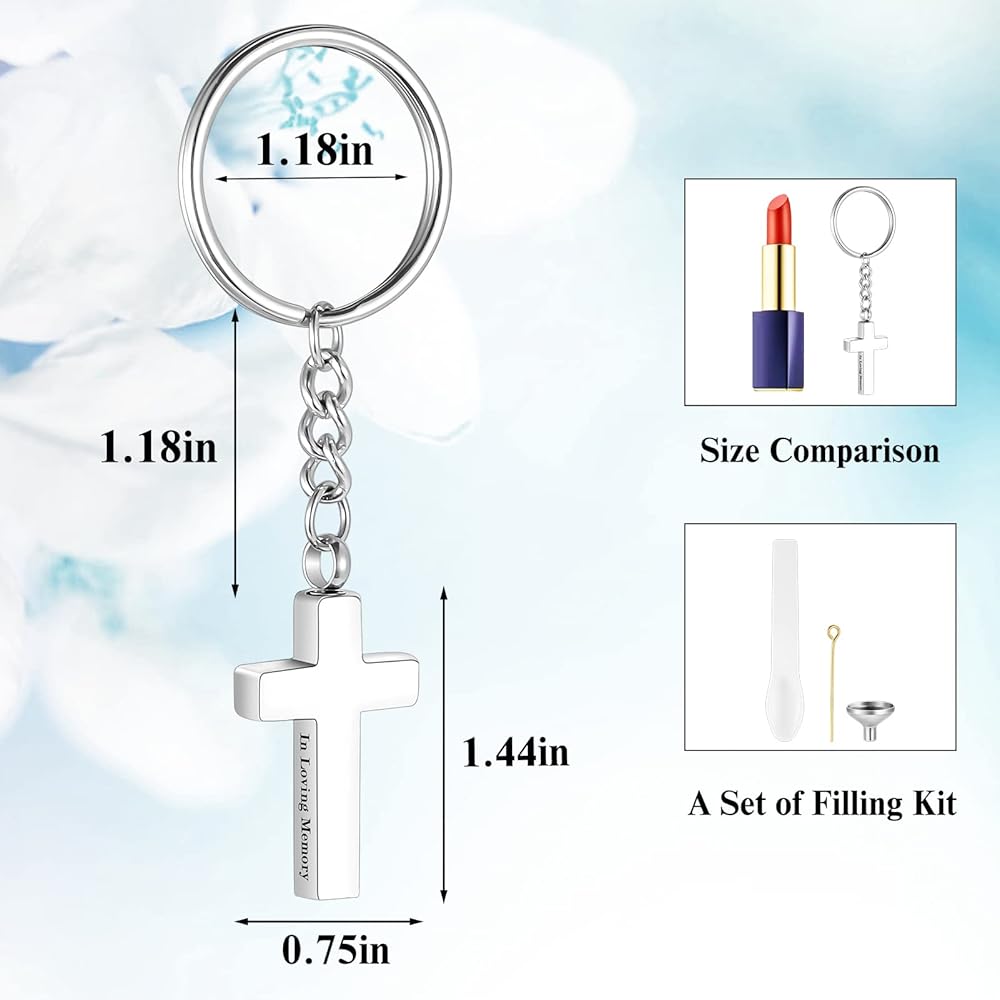 سحر ذو معنى: تحتوي كل سلسلة مفاتيح رماد على مجوهرات متقاطعة مع مقولة In Loving Memory، يمكنك تخصيص حلقة مفاتيحك على الجزء الخلفي من الصليب لتذكر أحبابك.