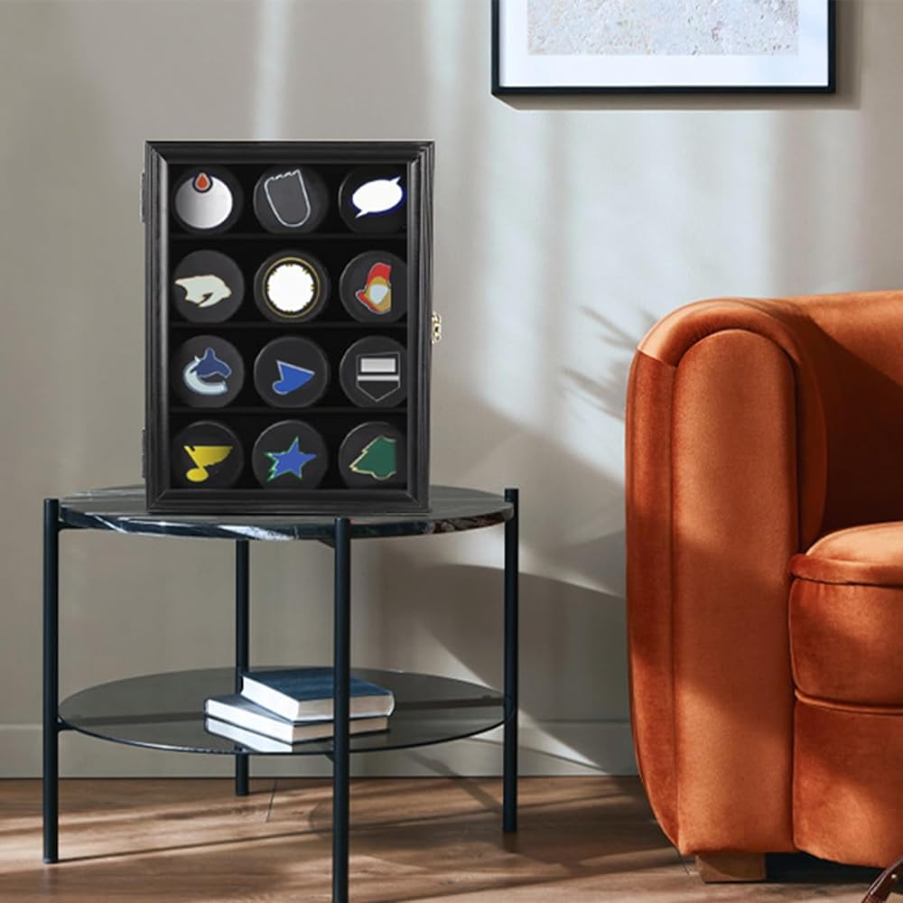 علبة عرض لعبة الهوكي مع باب أكريليك مقاوم للأشعة فوق البنفسجية في المقدمة لحماية مجموعاتك من البهتان بسبب الغبار والأشعة فوق البنفسجية.