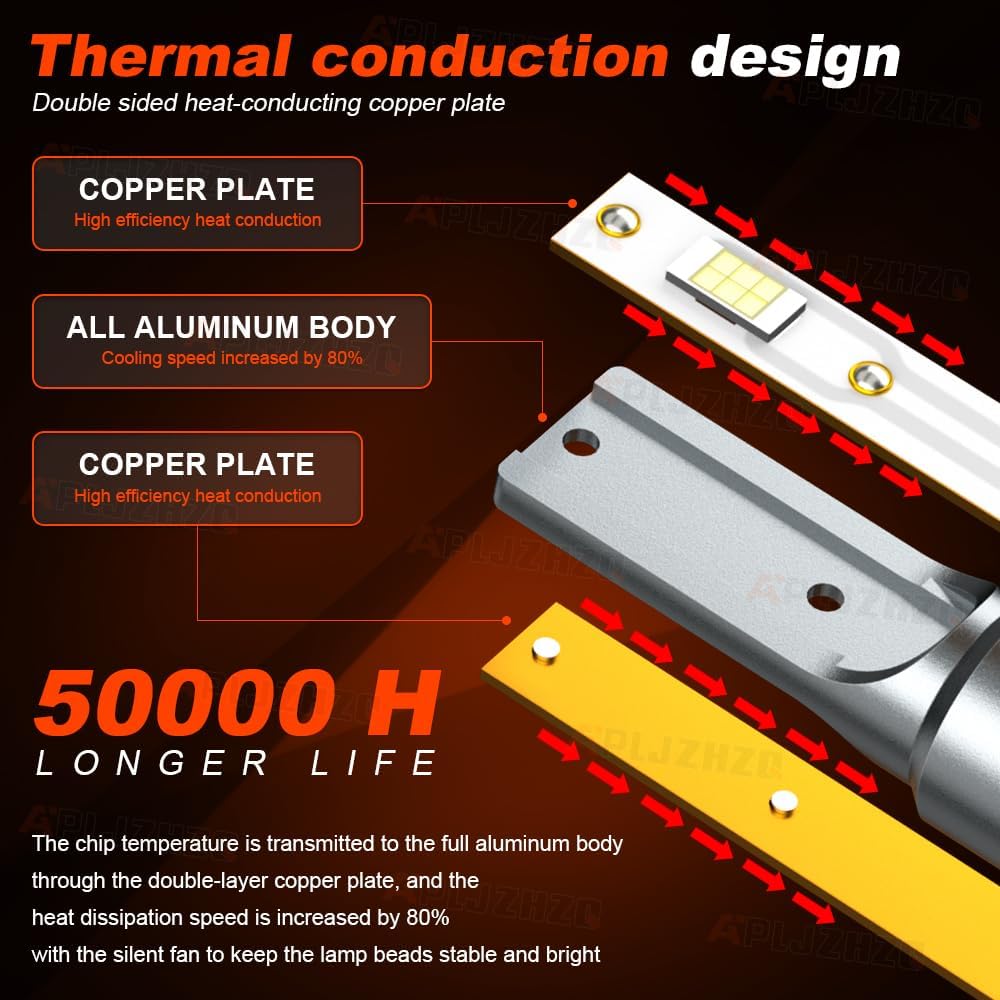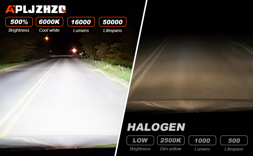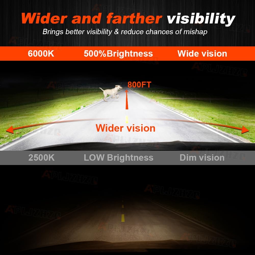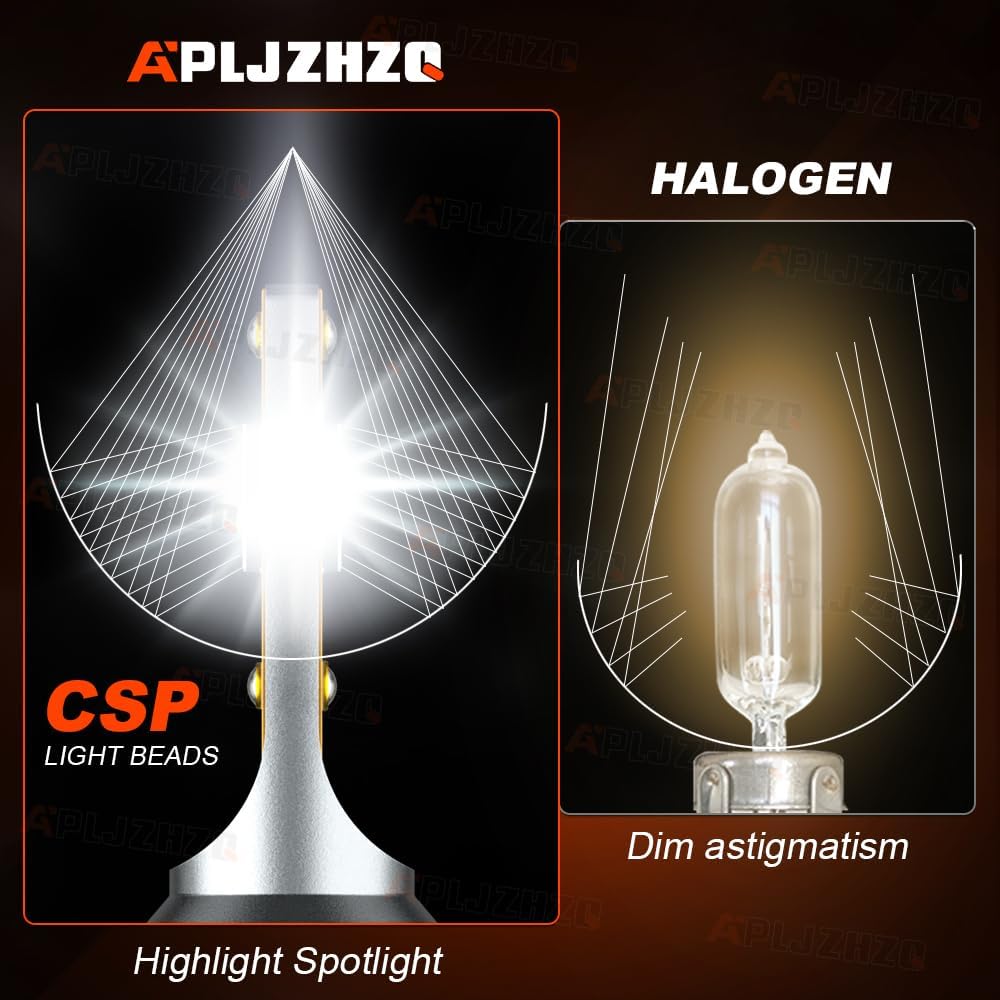 • إضاءة أوسع وأبعد - مجموعة مصابيح الرأس APLJZHZQ مدمجة في أعلى 3570 شريحة CSP، 28,000 لومن لكل زوج. تتميز بإخراج أكثر سطوعًا ونمط شعاع، وتوفر نطاق إضاءة أكبر من الرقائق الأخرى. تسمح لك برؤية أوسع وأبعد، بدون بقعة سوداء أو خافتة، دون عمى المركبات القادمة. رؤية أكثر وضوحًا أثناء القيادة ليلاً، مما يجعل القيادة أكثر أمانًا على الطرق الريفية أو الطرق السريعة.